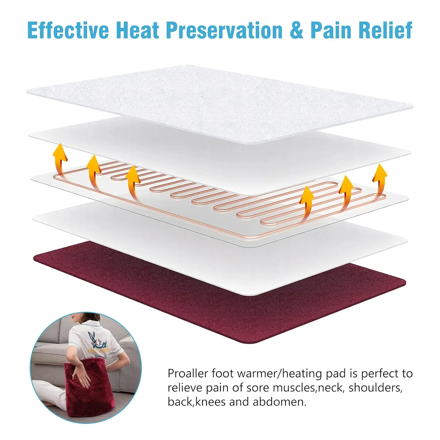 Experience ultimate warmth and relief with the PROALLER Foot Warmer! This versatile electric heated pad is designed to provide unmatched comfort for cold feet, tackling issues like poor circulation, arthritis, plantar fasciitis, and chronic pain. But the benefits don’t stop there! This warming pad is also ideal for soothing sore muscles in your back, shoulders, abdomen, legs, and arms. Ladies, say goodbye to menstrual cramps with targeted, comforting heat.