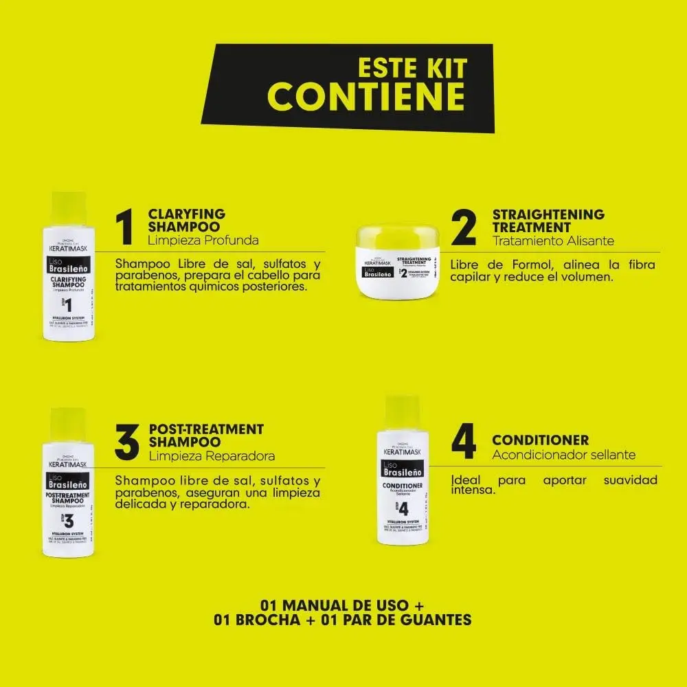 Achieve salon-worthy smooth and silky hair at home with our trendy Formol-Free Hair Straightening Kit! This revolutionary treatment is formulated with Hyaluron System technology, a powerful blend of hyaluronic acid and keratin, to deliver unparalleled straightening results that last up to 12 weeks. Say goodbye to frizz and hello to beautifully tamed hair! Our innovative formula works by deeply repairing the hair fiber, effectively reducing frizz and creating a sleek, straight look without the need for constant flat ironing. Experience long-lasting results that leave your hair feeling incredibly soft, looking radiantly shiny, and maintaining a healthy level of hydration. This kit doesn’t just straighten; it also helps retain and balance moisture within the hair structure, ensuring your locks stay tame, shiny, and completely frizz-free. The comprehensive pack includes everything you need for a successful at-home treatment: a 30ml deep cleansing shampoo to prepare your hair, a 150ml straightening treatment for transforming your locks, a 30ml repairing cleansing shampoo to maintain the results, and a 30ml conditioner to lock in moisture and shine. We’ve also included detailed instructions, a convenient brush for application, and protective gloves to ensure a safe and easy process. Our formula is completely formol-free, making it a safer and healthier alternative to traditional straightening treatments. It’s designed for easy and safe use in the comfort of your own home. In just a few simple steps, you can achieve professional-looking results that last. This kit is suitable for all hair types, whether you have fine, thick, curly, or wavy hair. Plus, we’re proud to say our product is cruelty-free, so you can feel good about using it. Embrace the beauty of smooth, manageable hair with our Formol-Free Hair Straightening Kit!