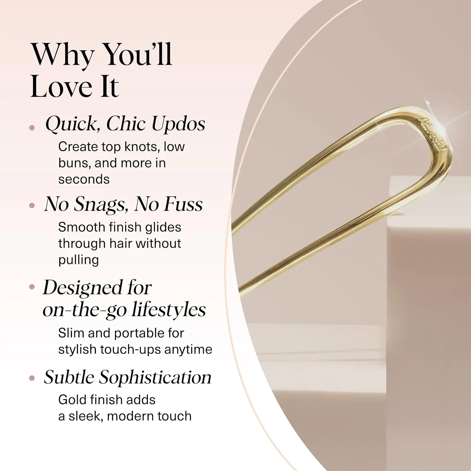 • Chic, minimalist design complements all outfits and hair colors.