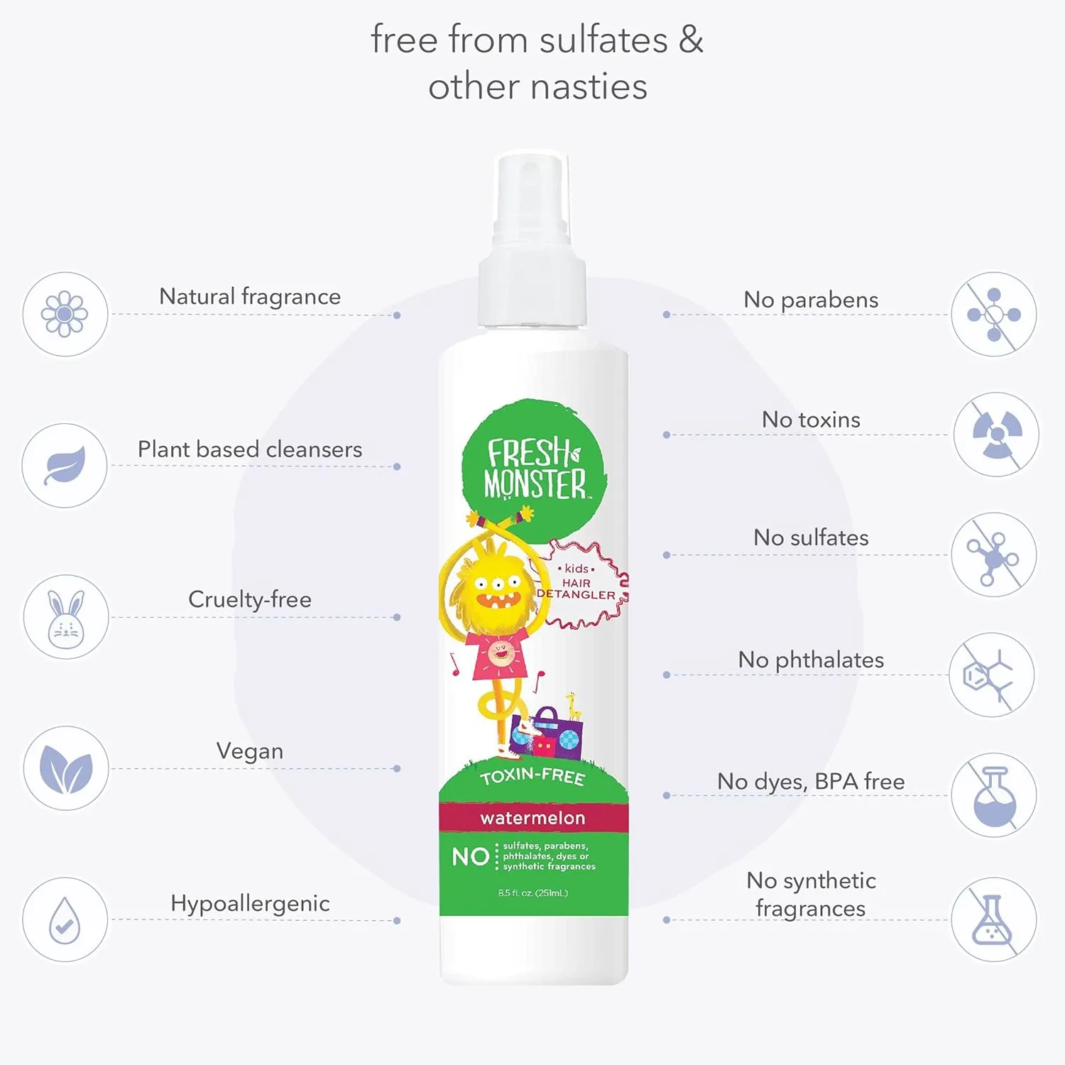 Say goodbye to stubborn knots and tangles with Fresh Monster Kids Detangler Spray! This 2-pack provides double the detangling power, all while keeping your child safe from harmful toxins. Fresh Monster is the first affordable, 100% toxin-free, plant-based kids hair detangler that effectively smooths even the most monstrous tangles. We believe in complete transparency, so you’ll find no hidden “fragrances” here. Our delightful scent comes from all-natural botanical and fruit extracts, clearly labeled on the bottle. Made with sensitive skin in mind, our Dermatologist-Tested formula is gentle and safe for daily use. Fresh Monster Kids Hair Detangler is free from toxins, sulfates, parabens, phthalates, dyes, synthetic fragrances, BPA, gluten, and soy. It’s proudly made in the USA with no animal testing involved, and certified Cruelty-Free by PETA. The easy-to-use, re-closeable pump empowers kids to take charge of their hair care routine and makes travel a breeze. Give your child the gift of tangle-free, healthy hair with Fresh Monster Kids Detangler Spray! It is a great addition to your childs hair care products.
