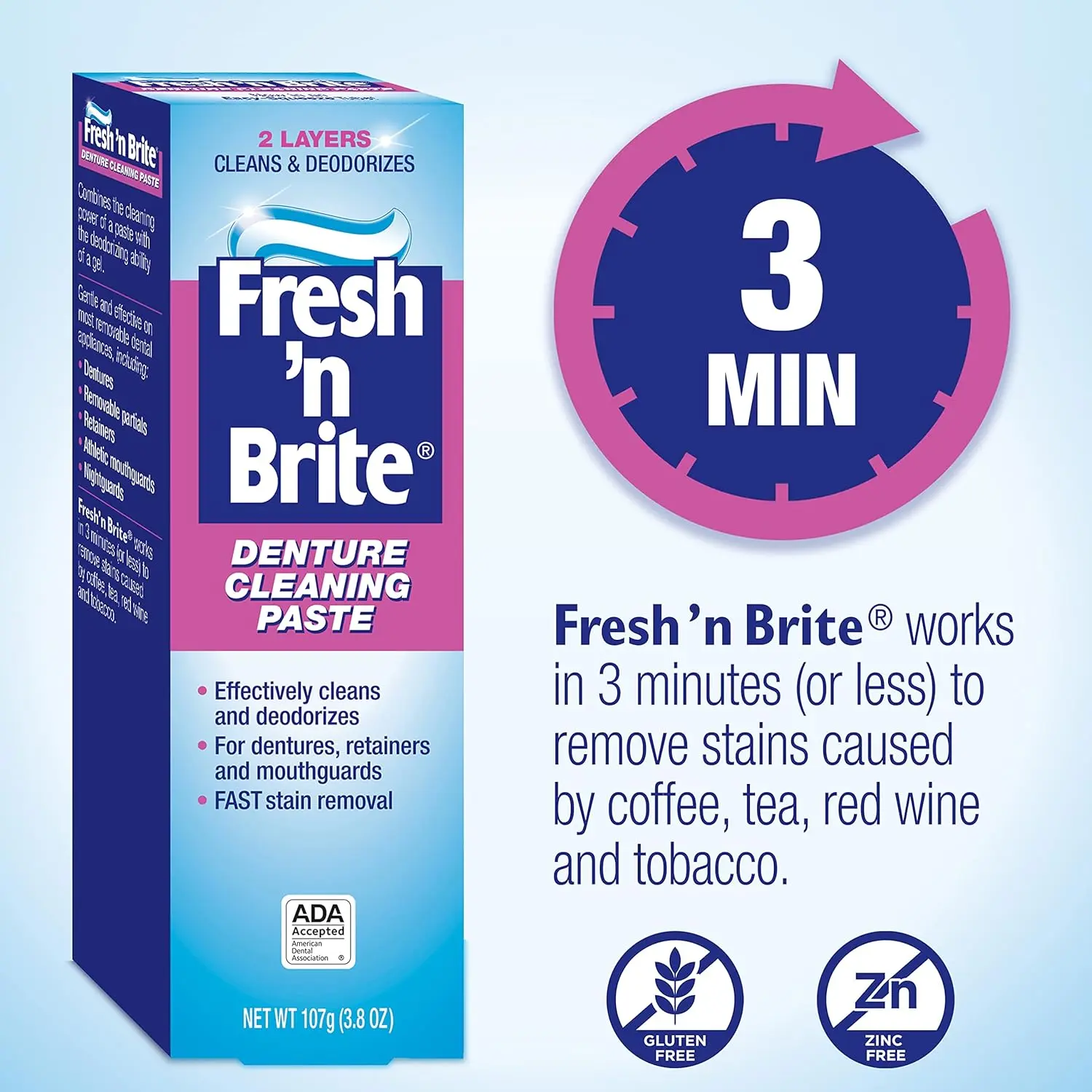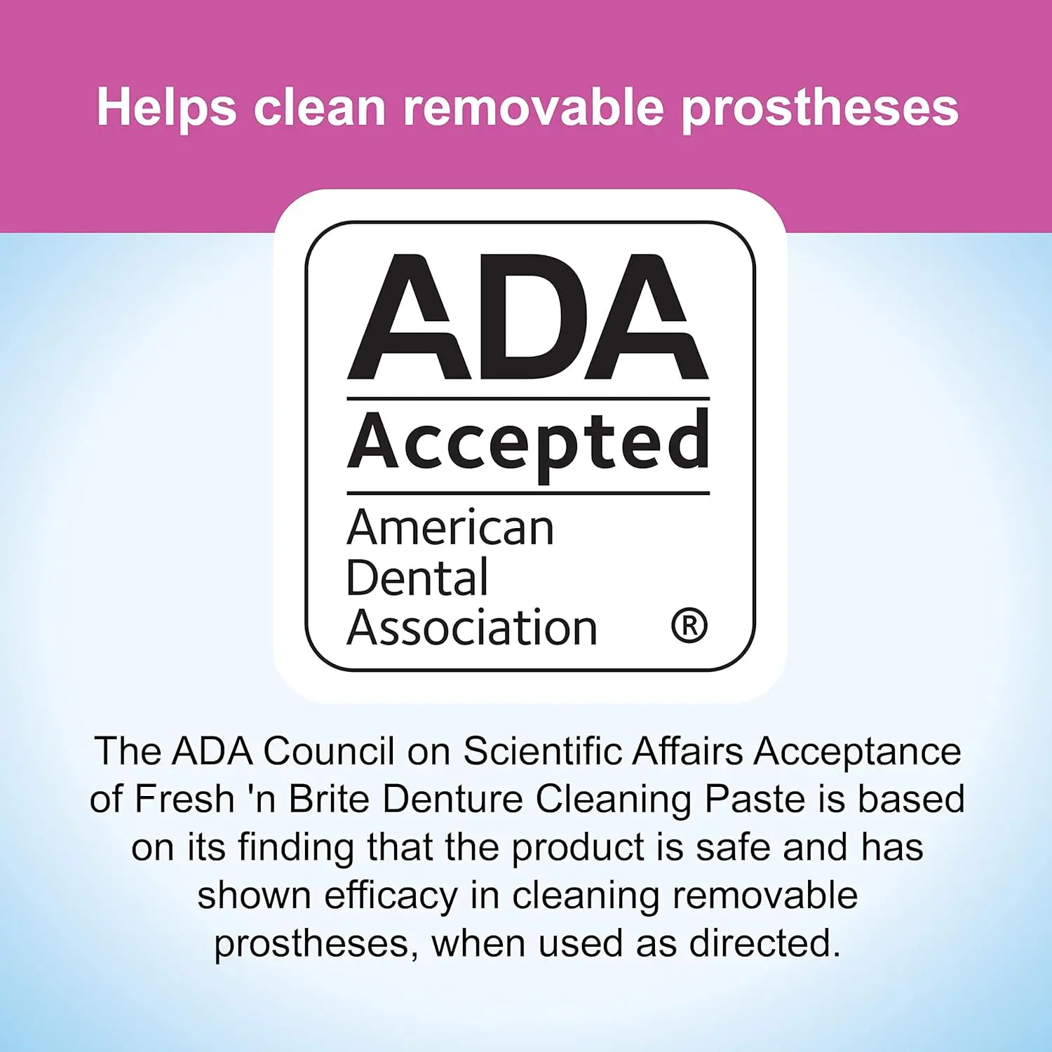 • Gentle formula cleans without scratching dentures.