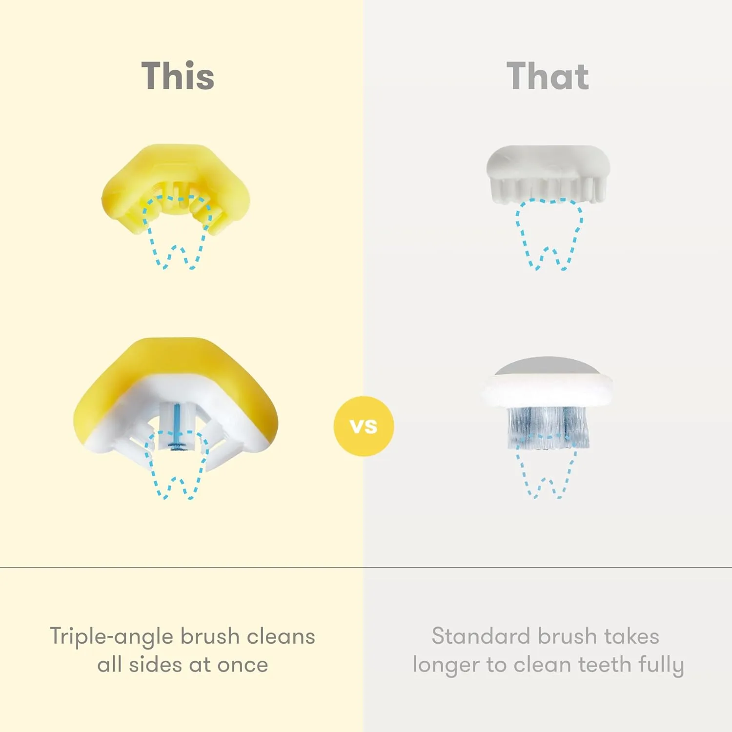 • Toddler toothbrush has triple-angle bristles to clean all sides of teeth.