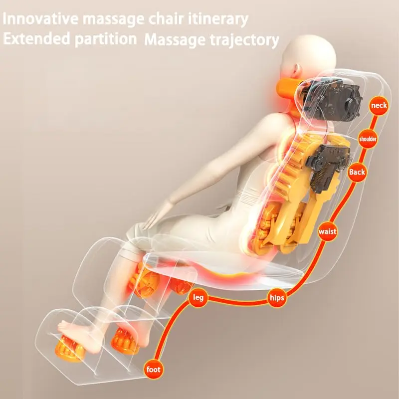 Customize your massage with the personalized multi-mode experience. Choose from 5 vibration modes and 3 massage intensities to create the perfect massage tailored to your individual needs. Advanced simulation kneading technology targets key areas such as your shoulders, neck, back, lumbar region, and thighs, providing focused relief where you need it most. Enhance your relaxation with the optional infrared heat function, which further soothes muscle tension and improves circulation. Extend the benefits to your lower body with the integrated foot roller and calf belly massage, providing all-around relief from fatigue and discomfort.
