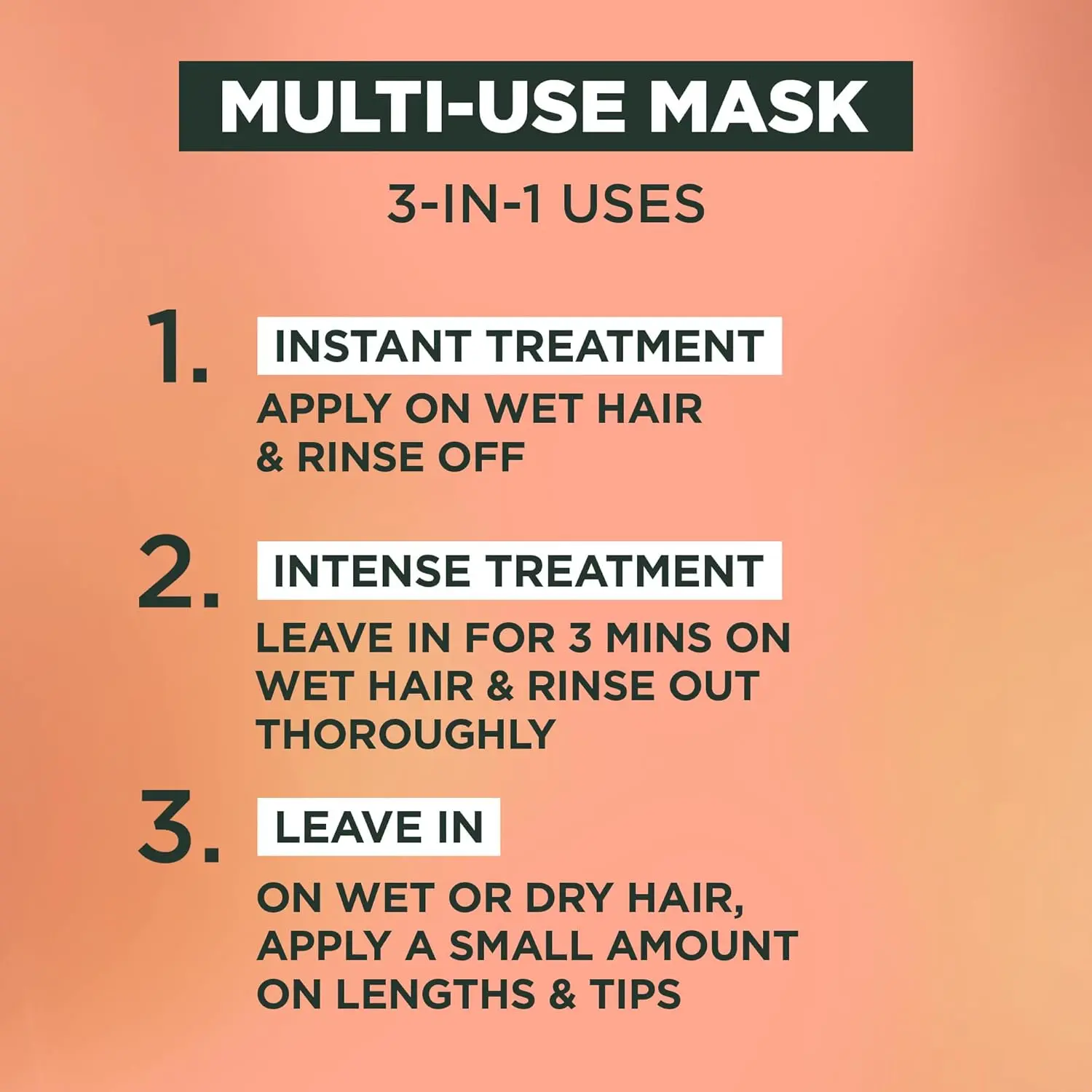 • 3in1 Hair Treatment: Conditioner, Rinse-Out Mask, Leave-In Conditioner