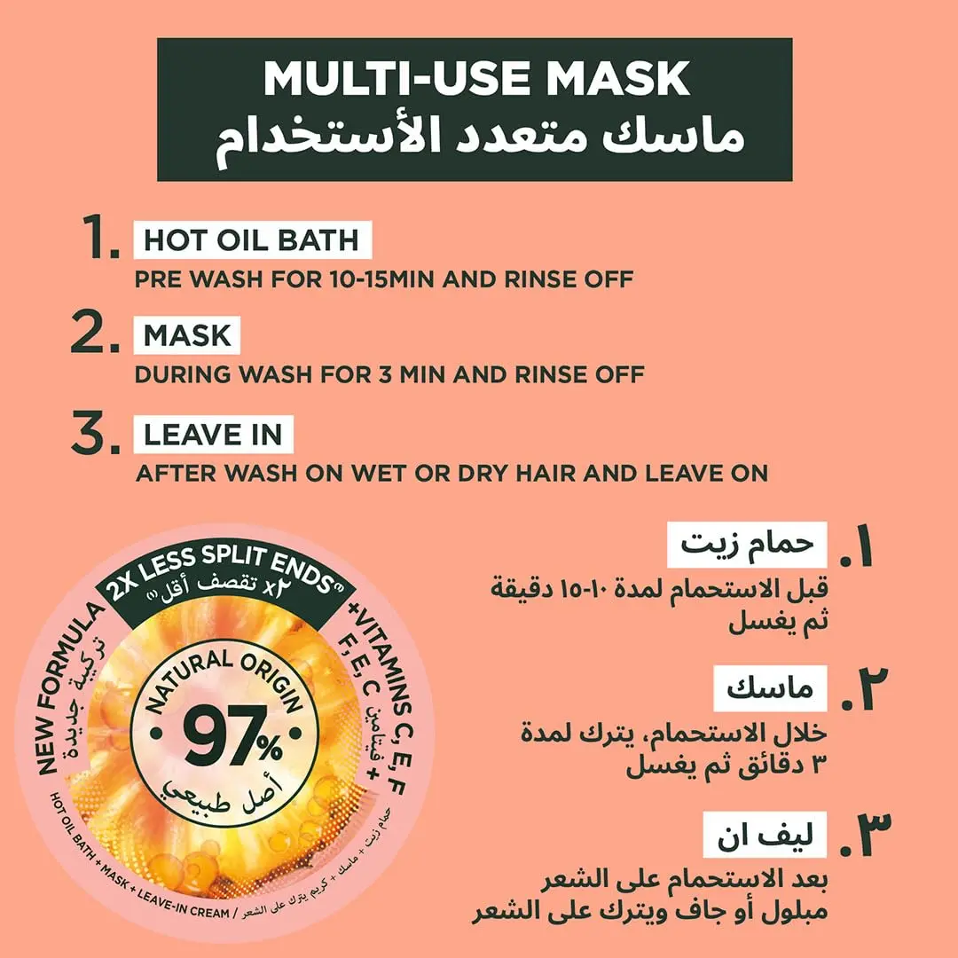 Transform your hair with the Garnier Pineapple Hair Mask, a 98% natural origin formula supercharged with vitamins C, E, and F. This powerful mask is designed to give you super hair, reducing breakage and split ends for healthier, more resilient locks. Infused with the tropical goodness of pineapple, this mask not only smells amazing but also works wonders to strengthen and nourish your hair from root to tip. Say goodbye to brittle, damaged hair and hello to smooth, shiny, and revitalized strands. Experience the difference with a formula that’s gentle on your hair and the environment. This hair mask will leave your hair feeling softer, stronger, and more manageable. Perfect for all hair types, especially those prone to breakage and split ends, the Garnier Pineapple Hair Mask is your secret weapon for achieving the healthy, beautiful hair you’ve always dreamed of. Incorporate this mask into your hair care routine to see visible improvements in the overall health and appearance of your hair. Enjoy the delightful scent of pineapple as you treat your hair to a nourishing and restorative experience. Get ready to unleash your hair’s full potential with Garnier! With regular use, you’ll notice a significant reduction in breakage and split ends, leading to longer, stronger, and more vibrant hair.