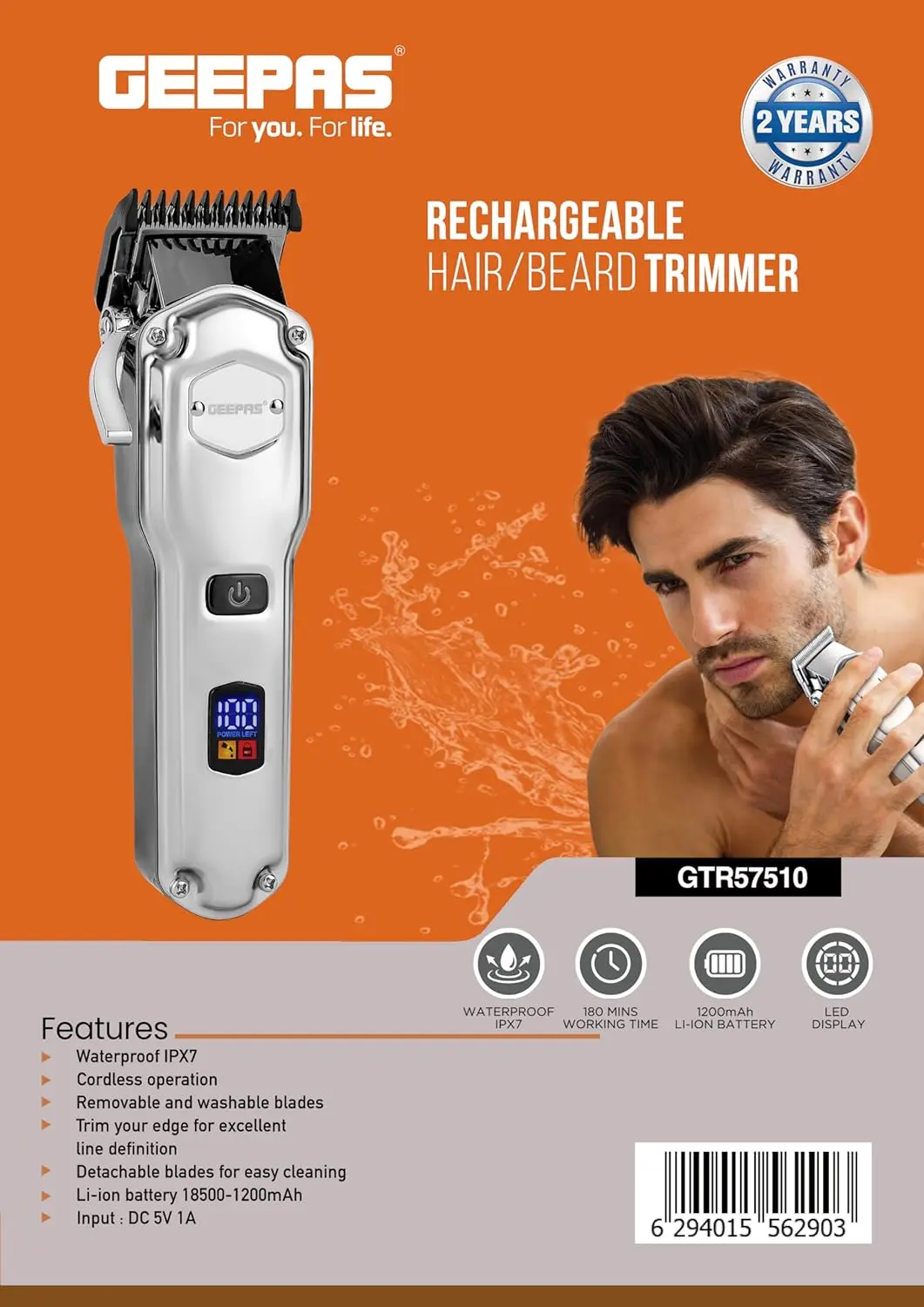 Geepas Hair & Beard Trimmer Rechargeable, Waterproof