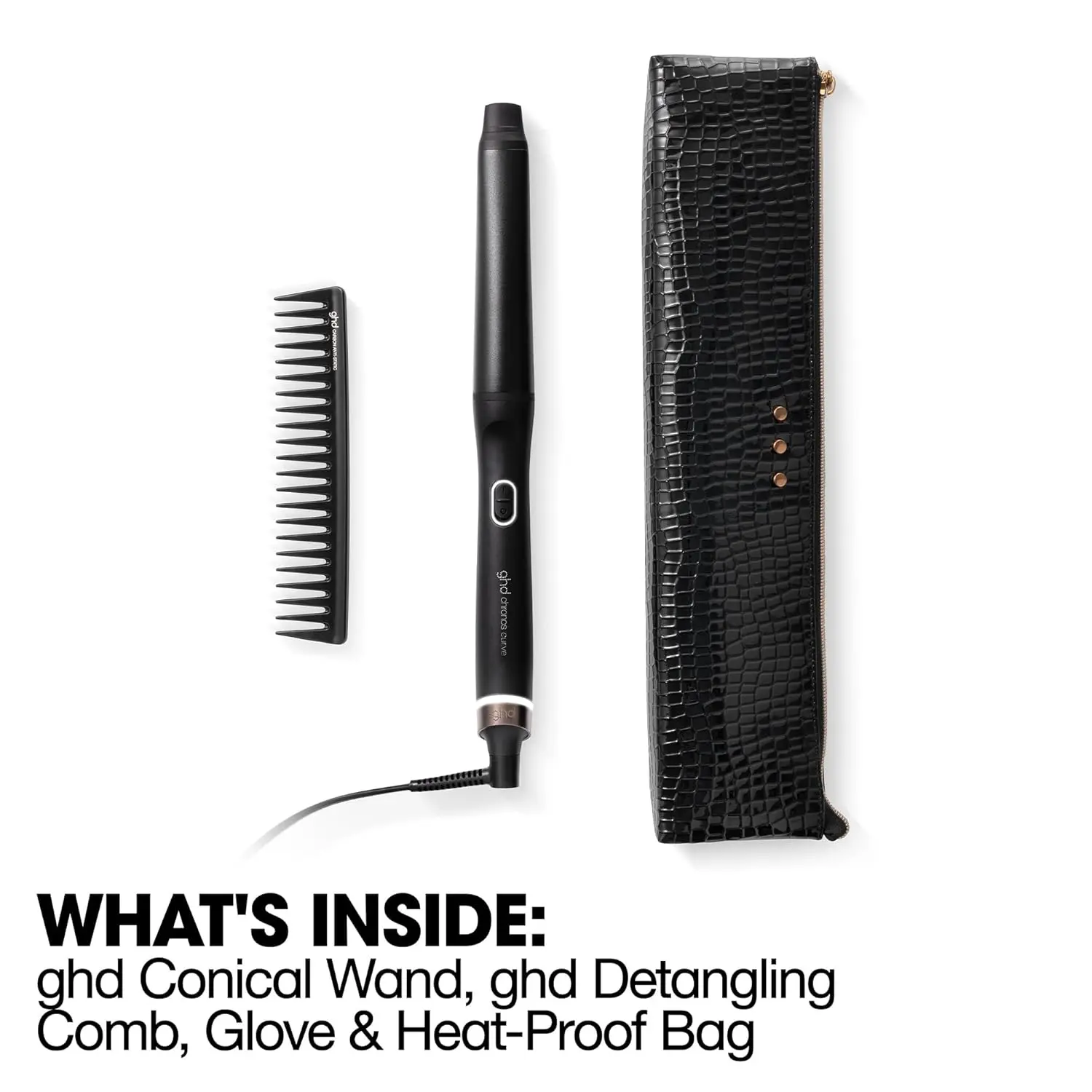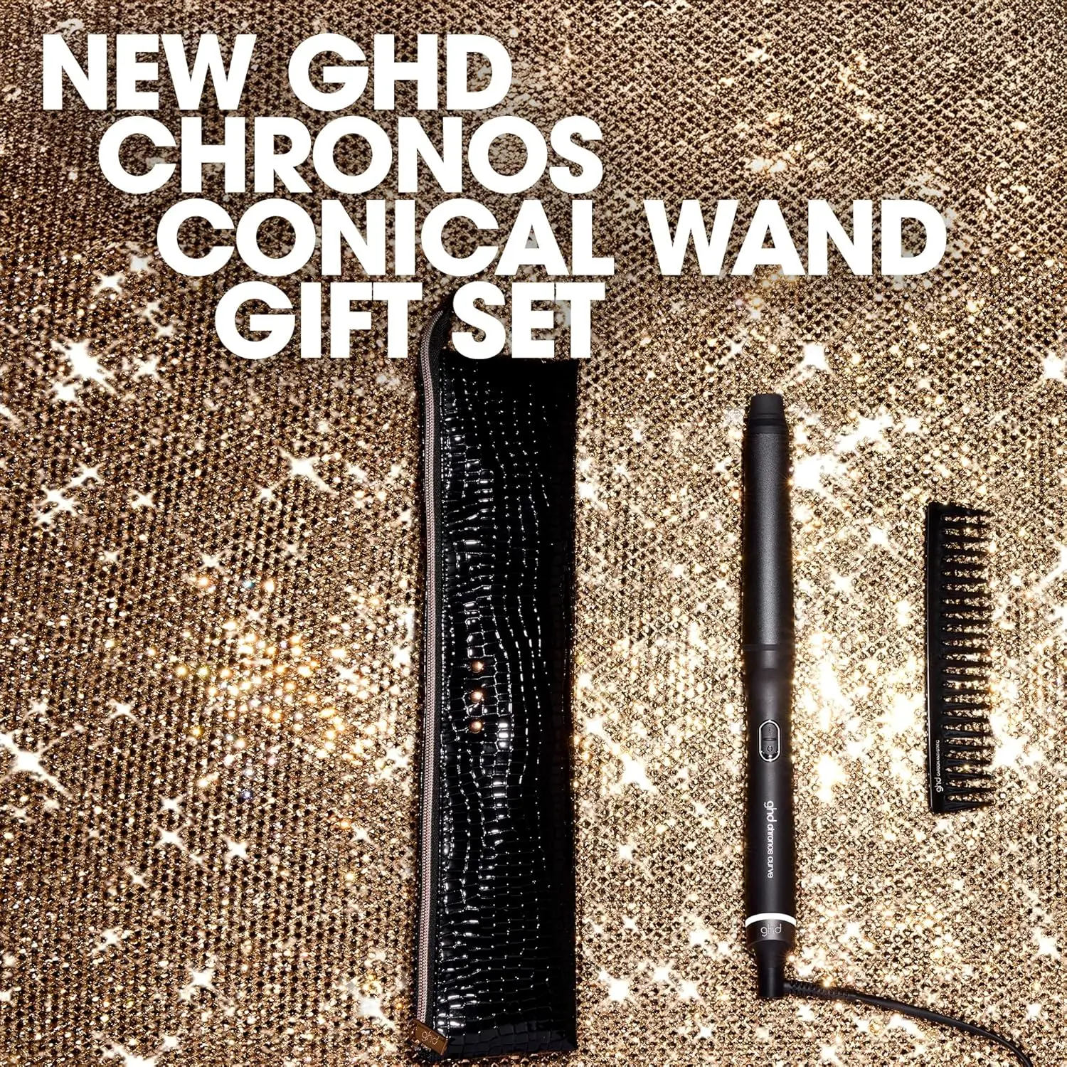 Get salon-worthy curls with the ghd Chronos Curling Wand Gift Set. Achieve smooth, shiny, and frizz-free styles with advanced technology and a versatile conical barrel. Perfect for any occasion!