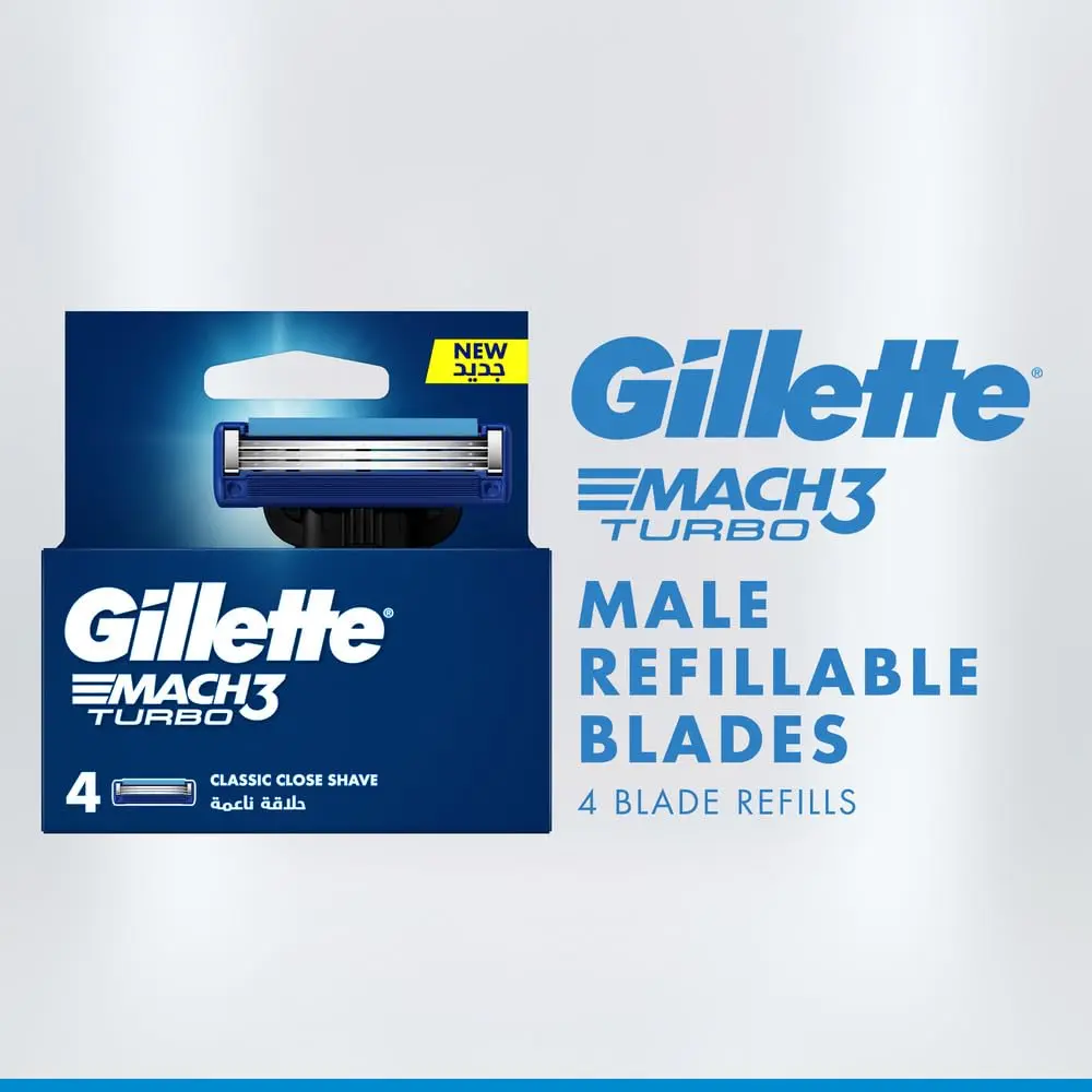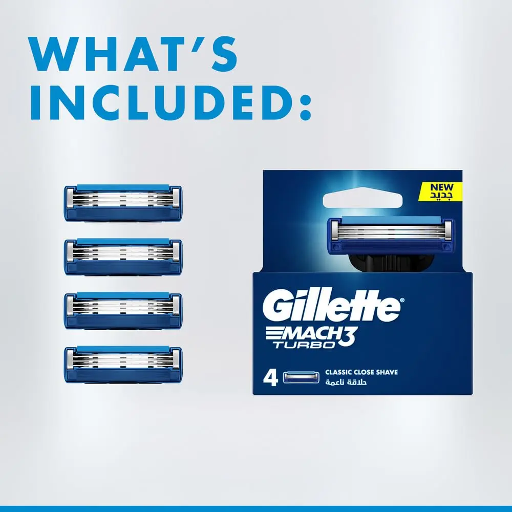 Experience a closer, more comfortable shave with Gillette Mach3 Turbo Razor Blades. Engineered with advanced 3-blade technology and an anti-friction coating, these blades are designed to deliver a smooth shave without the irritation you might experience with other razors like the Gillette Mach3. The flexible Comfort Guard, featuring 10 microfins, gently follows the contours of your face, prepping your skin for a comfortably close shave. Each blade is individually spring-mounted, adapting to your skin’s unique surface for reduced pressure and minimized irritation compared to Blue 2 Plus Disposable razors. The Indicator Lubrication Strip not only enhances glide for a smoother shave but also gradually fades to white, signaling when it’s time to replace the blade. Enjoy the lasting comfort of the Mach3 Turbo, providing superior performance even on the 10th shave compared to a new Blue 2 Plus disposable razor. Upgrade your shaving routine with Gillette Mach3 Turbo and feel the difference.