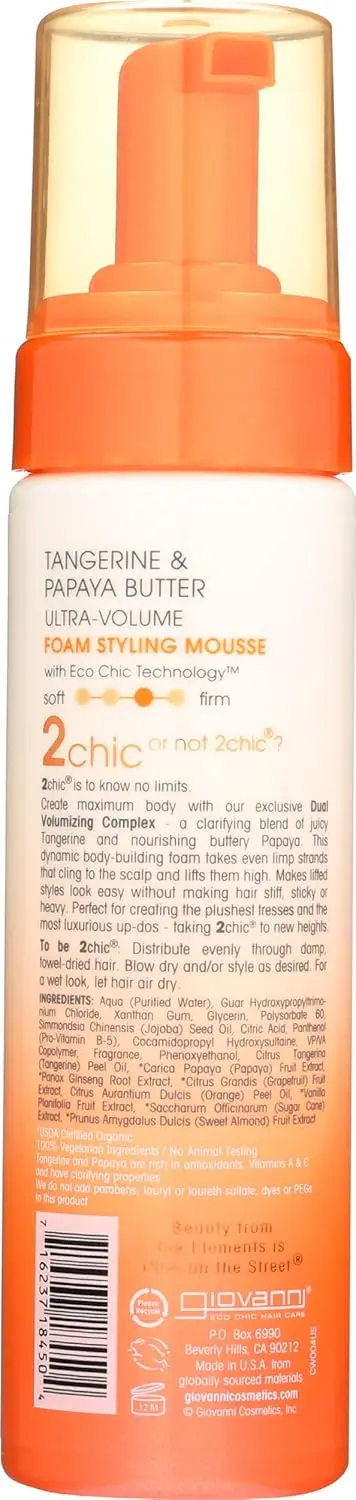 Achieve stunning volume and beautifully defined curls and waves with Giovanni Ultra Volume Mousse. This light formula provides weightless control, adding fullness and bounce without stiffness or stickiness. Enhance your natural texture while keeping your hair soft, manageable, and full of life. Say goodbye to flat, lifeless hair and hello to vibrant, voluminous styles that last all day. Giovanni Ultra Volume Mousse is the perfect solution for adding body and definition to all hair types, especially those seeking to maximize their curls and waves. Experience the difference of professional-quality styling that nourishes and protects your hair, leaving it looking and feeling its best. Formulated with natural ingredients, this mousse is gentle on your hair and scalp, providing long-lasting hold and control without harsh chemicals. Get ready to turn heads with your beautifully enhanced and voluminous hair! Let Giovanni Ultra Volume Mousse unlock your hair’s full potential. With its light and airy texture, this mousse effortlessly coats each strand, creating lift and dimension from root to tip. Embrace your natural texture and achieve salon-worthy results in the comfort of your own home. Whether you’re rocking a head full of bouncy curls or soft, flowing waves, Giovanni Ultra Volume Mousse will help you achieve the style you’ve always dreamed of.