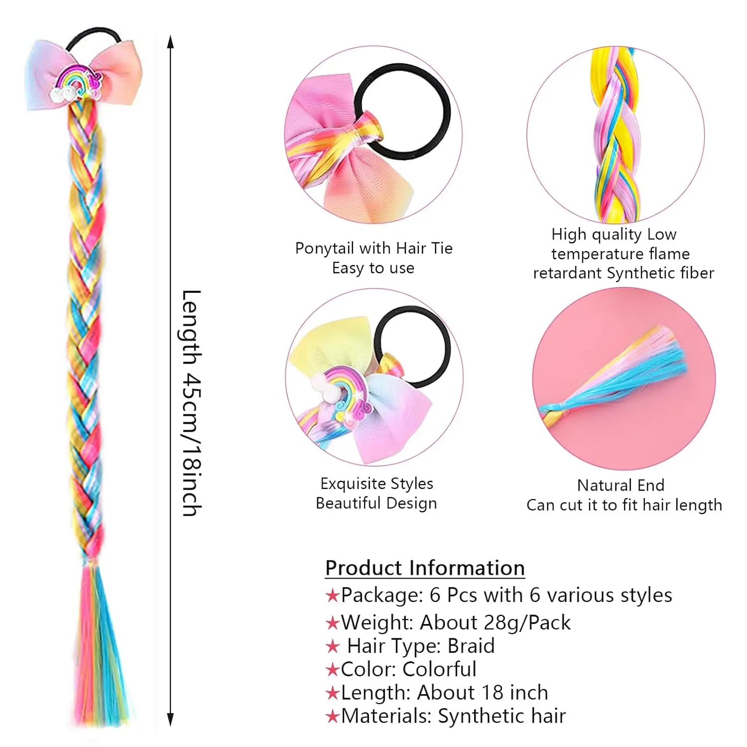 These hair extensions are incredibly easy to use. Each braid is designed with a soft, elastic hair band that securely attaches to the hair without pulling or causing discomfort. They are lightweight and comfortable for all-day wear, making them ideal for daily use or special events. The 18-inch length allows for versatile styling, whether your child has short, long, thick, or thin hair. Simply trim the braids to the desired length for a perfect fit.
