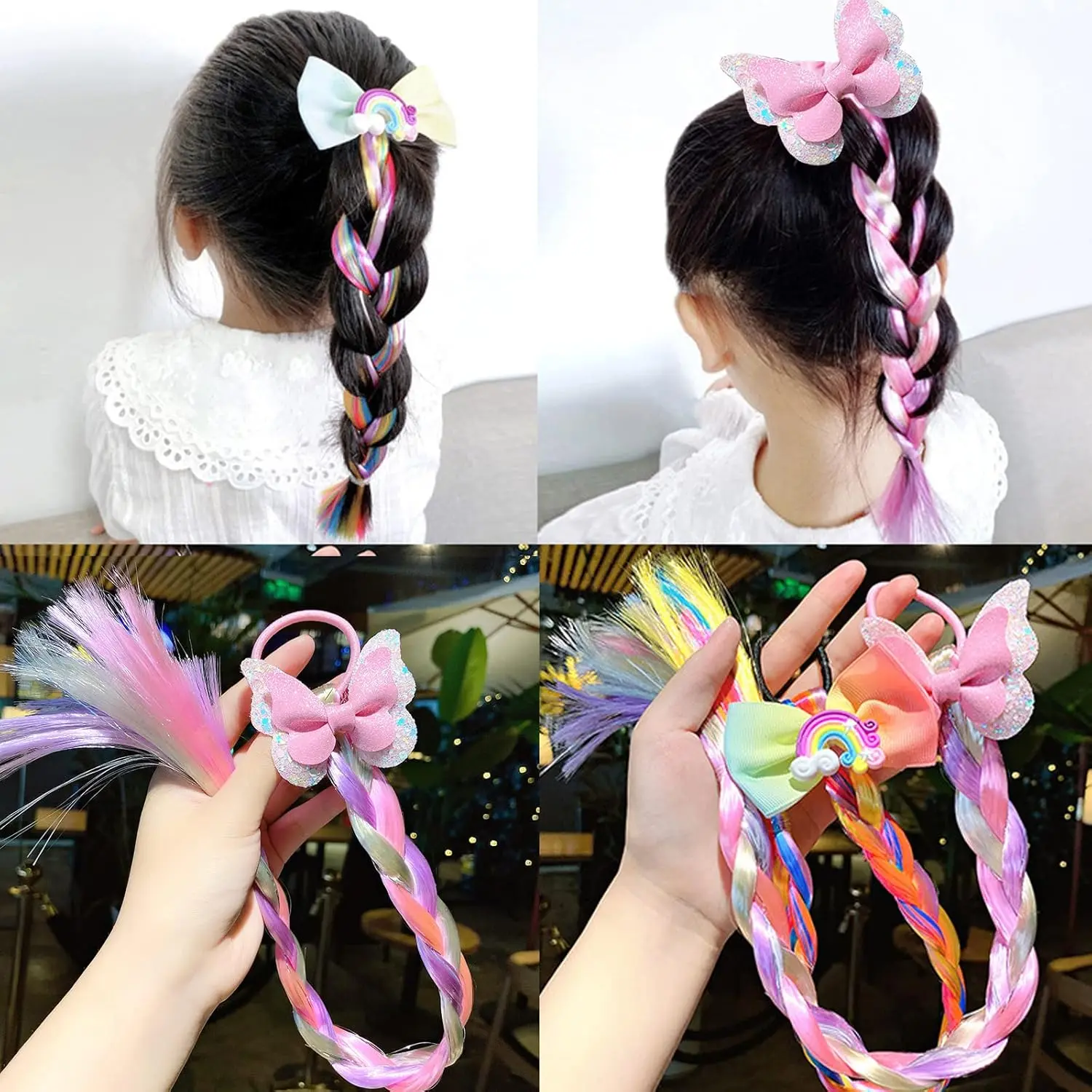 Let your child express their unique style with these colorful hair extensions. They are a wonderful gift for birthdays, holidays, or any special occasion. With 6 different colors to choose from, your child can mix and match to create their own unique look. These braids are a fun and easy way to add a touch of personality to any outfit. Get ready to turn heads and make a statement with these vibrant and adorable Girls Colored Braids Hair Extensions! Perfect for kids and teens alike, these braids will transform any ordinary hairstyle into something extraordinary. Whether it’s for a casual dress-up day or a special event, these hair pieces are sure to bring style and excitement.
