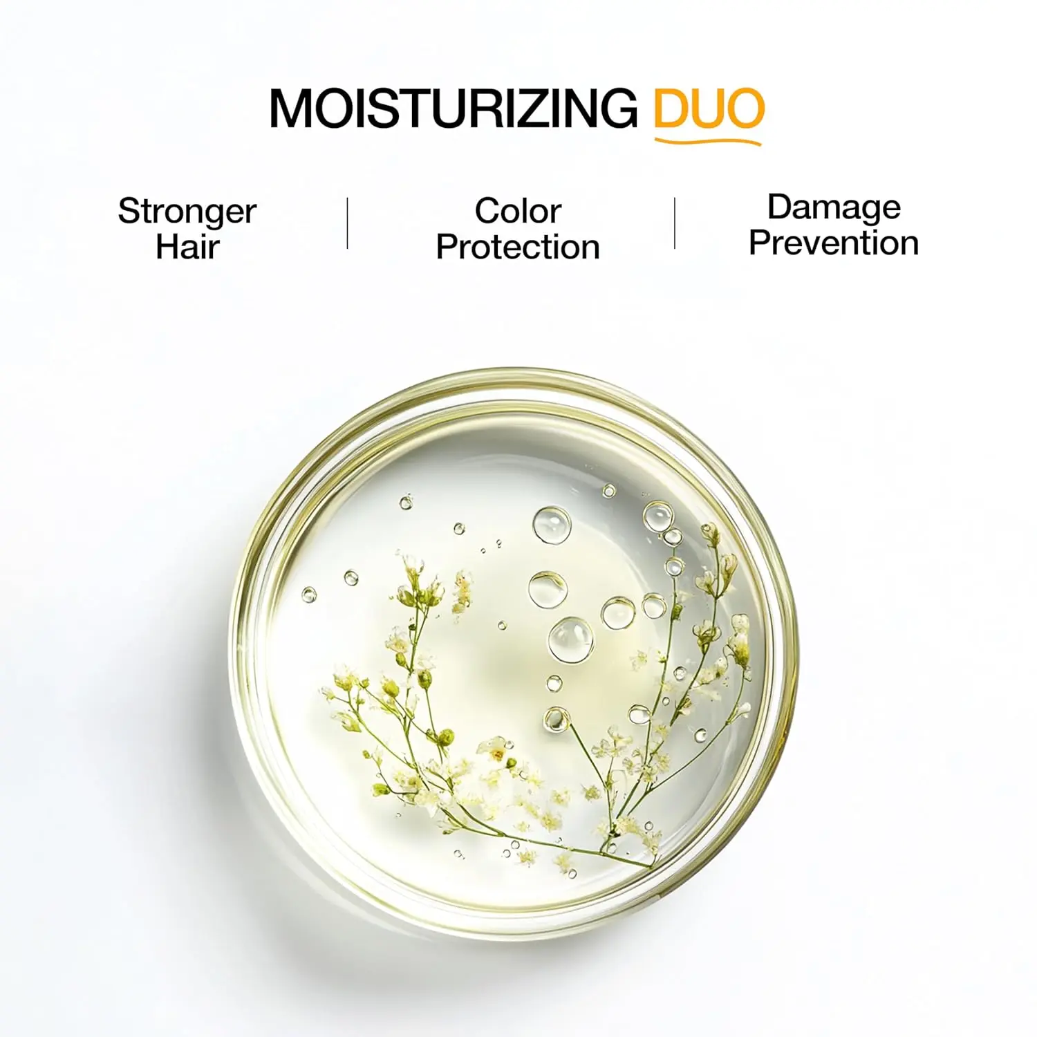 Hydrating shampoo & conditioner set for all hair types. Infused with JUVEXIN keratin. Repairs damage, reduces frizz, adds shine. Color-safe & cruelty-free. Made in USA.