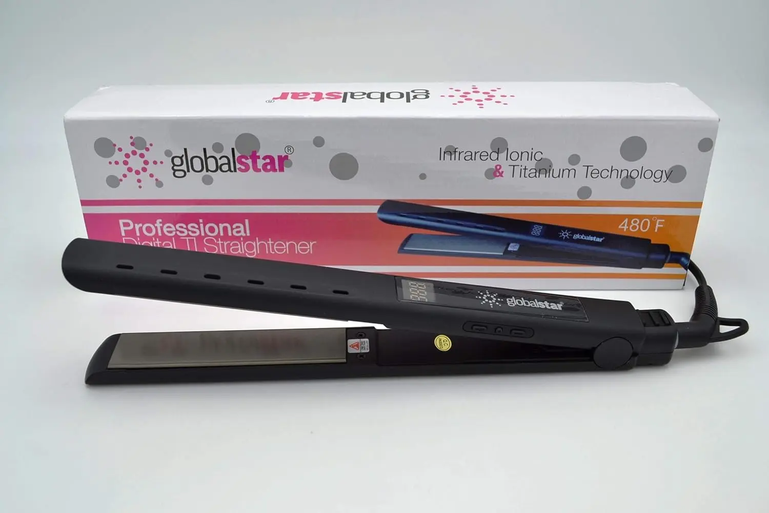 Achieve salon-worthy straight hair in the comfort of your own home with the Globalstar Hair Straightener. This professional-grade flat iron is designed to deliver sleek, smooth, and frizz-free results with every use. Featuring a rapid heating system and a wide temperature range, this straightener caters to all hair types and textures. Whether you have fine, delicate hair or thick, coarse locks, you can easily adjust the temperature to suit your specific needs, minimizing heat damage and maximizing styling efficiency. The Globalstar Hair Straightener utilizes advanced heat distribution technology to ensure consistent and even heat across the ceramic plates. This prevents hot spots and ensures that each strand of hair is straightened uniformly, resulting in a flawless and polished finish. The swivel cord provides flexibility and ease of movement, allowing you to style your hair without any restrictions. The ergonomic design ensures a comfortable grip, reducing hand fatigue during extended styling sessions. With its compact and lightweight design, the Globalstar Hair Straightener is also perfect for travel, allowing you to maintain your perfectly styled hair wherever you go. Say goodbye to bad hair days and hello to effortlessly straight and shiny hair with the Globalstar Hair Straightener. This hair straightener is your new best friend. This flat iron will do it all. It is a professional grade hair styling tool designed for your home.