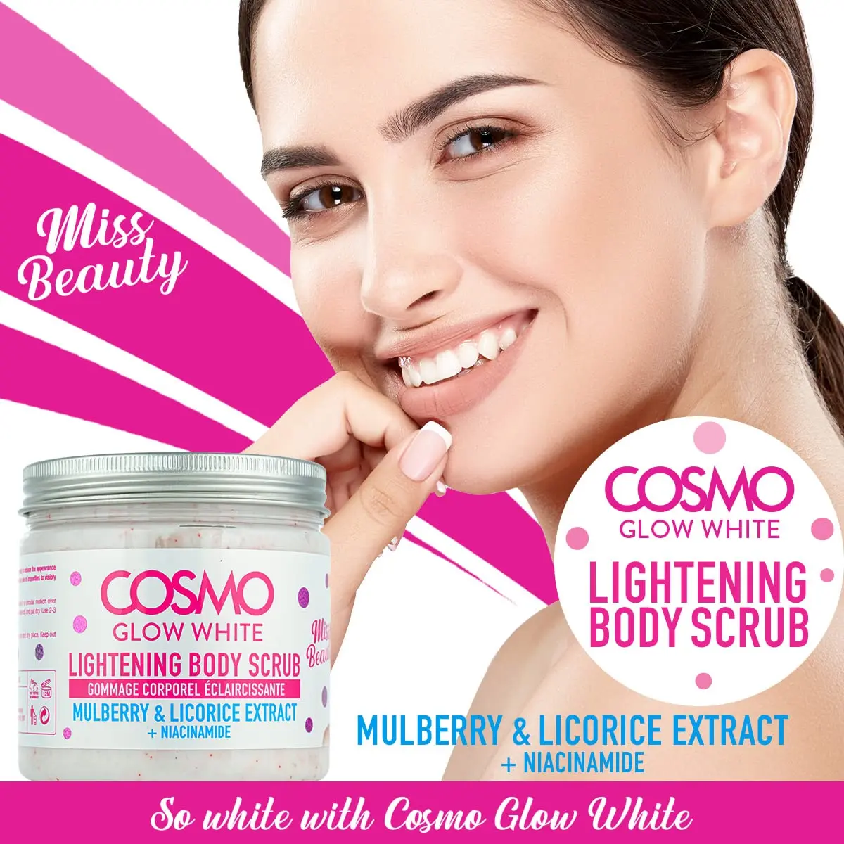 Reveal your skin’s natural radiance with Glow White Body Scrub. This gentle yet effective exfoliating scrub is designed to diminish the appearance of dark spots and unveil a smoother, brighter complexion. Our unique formula works by eliminating dead skin cells and deeply cleansing the skin of impurities, leaving it visibly polished, refined, and irresistibly soft. Regular use helps to promote healthy cell turnover, improve skin texture, and restore a youthful glow. Incorporate this luxurious scrub into your weekly routine to achieve a more even skin tone and a revitalized appearance. Experience the transformative power of Glow White and say hello to radiant, healthy-looking skin. Suitable for all skin types, this scrub is your secret weapon for achieving that coveted glow. Our formula is made with high-quality ingredients to ensure a gentle and effective exfoliation without stripping your skin of its natural moisture. Enjoy the invigorating sensation as you massage the scrub onto your skin, knowing that you’re removing impurities and promoting a healthier, more radiant you. Unlock your skin’s potential with Glow White Body Scrub!