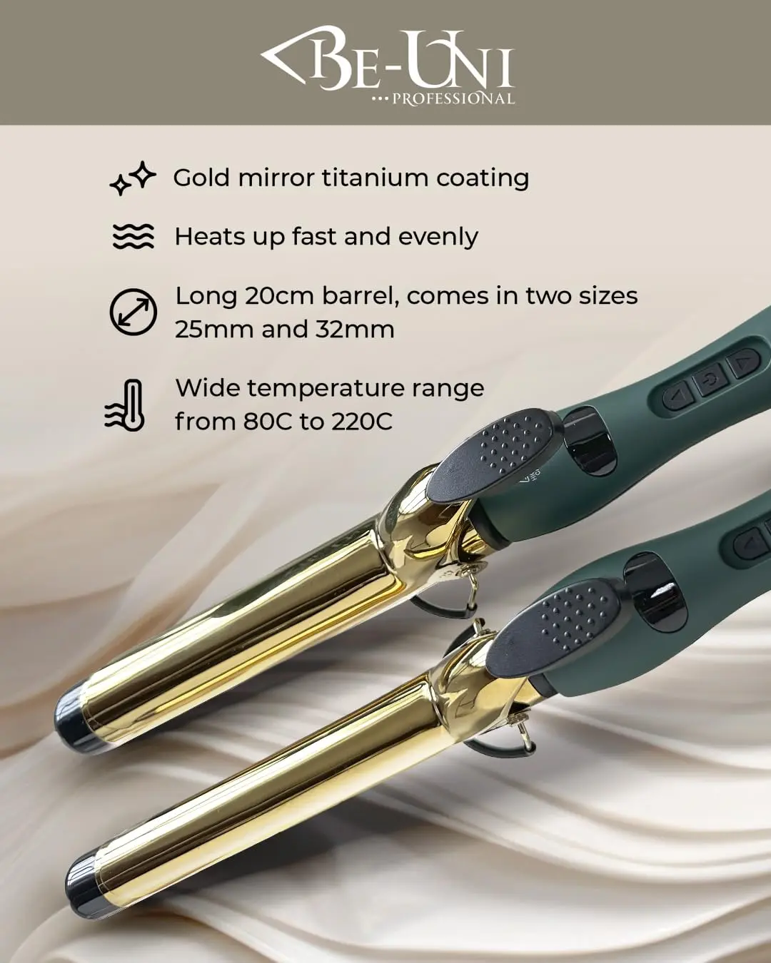 The Gold Titanium Curler 25mm delivers professional curls with its titanium coating, adjustable heat, and included accessories. Perfect for achieving salon-quality styles at home or on the go!