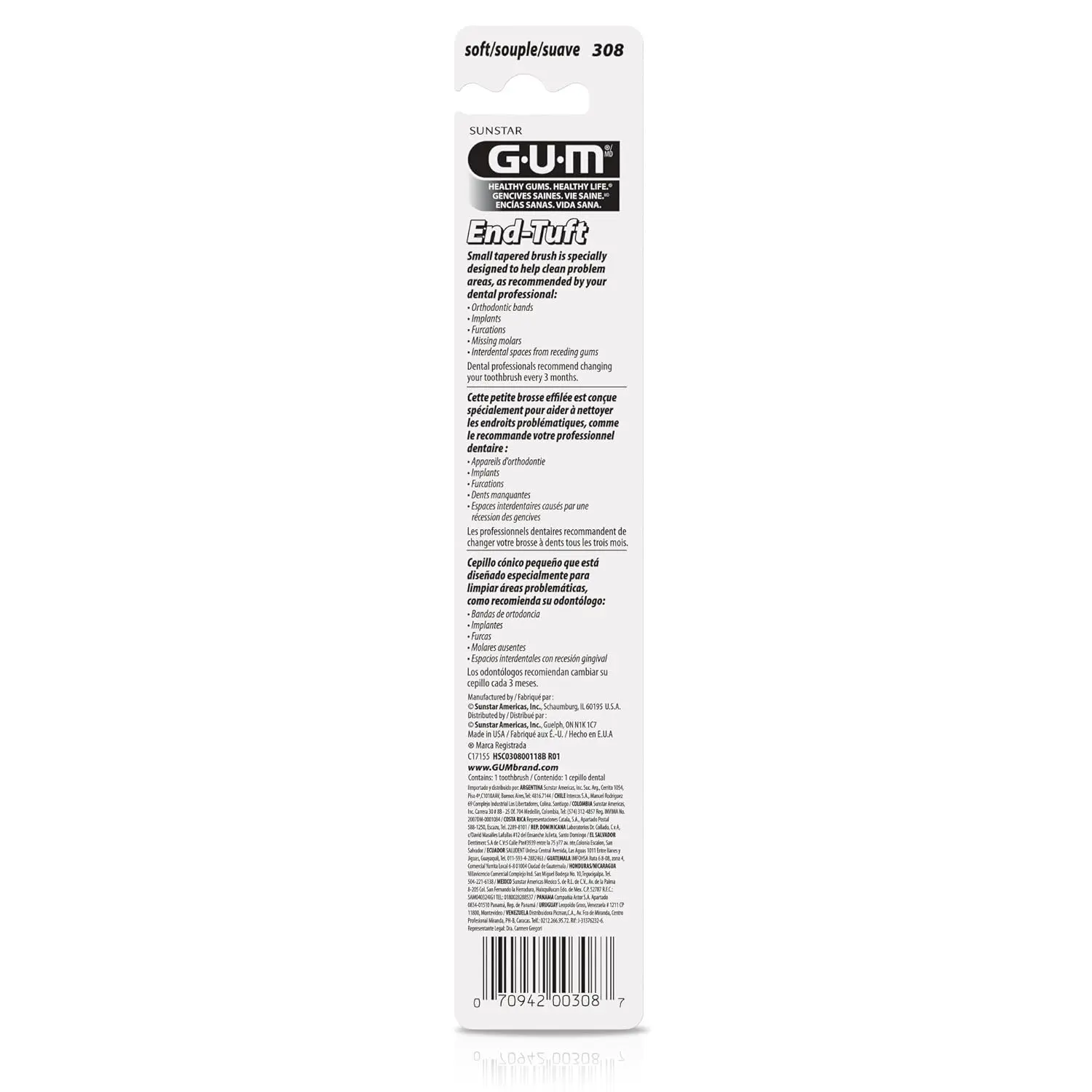 The GUM End Tuft Brush effectively cleans hard-to-reach areas, featuring soft bristles perfect for sensitive teeth. Its ergonomic handle provides superior control for optimal oral hygiene.