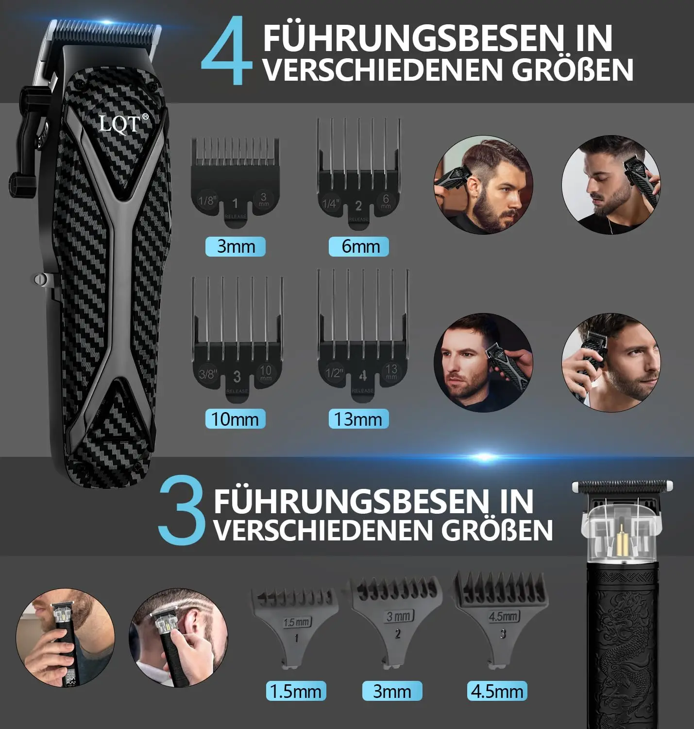 • 7 high-quality limiting combs for precise trimming of any hair length.