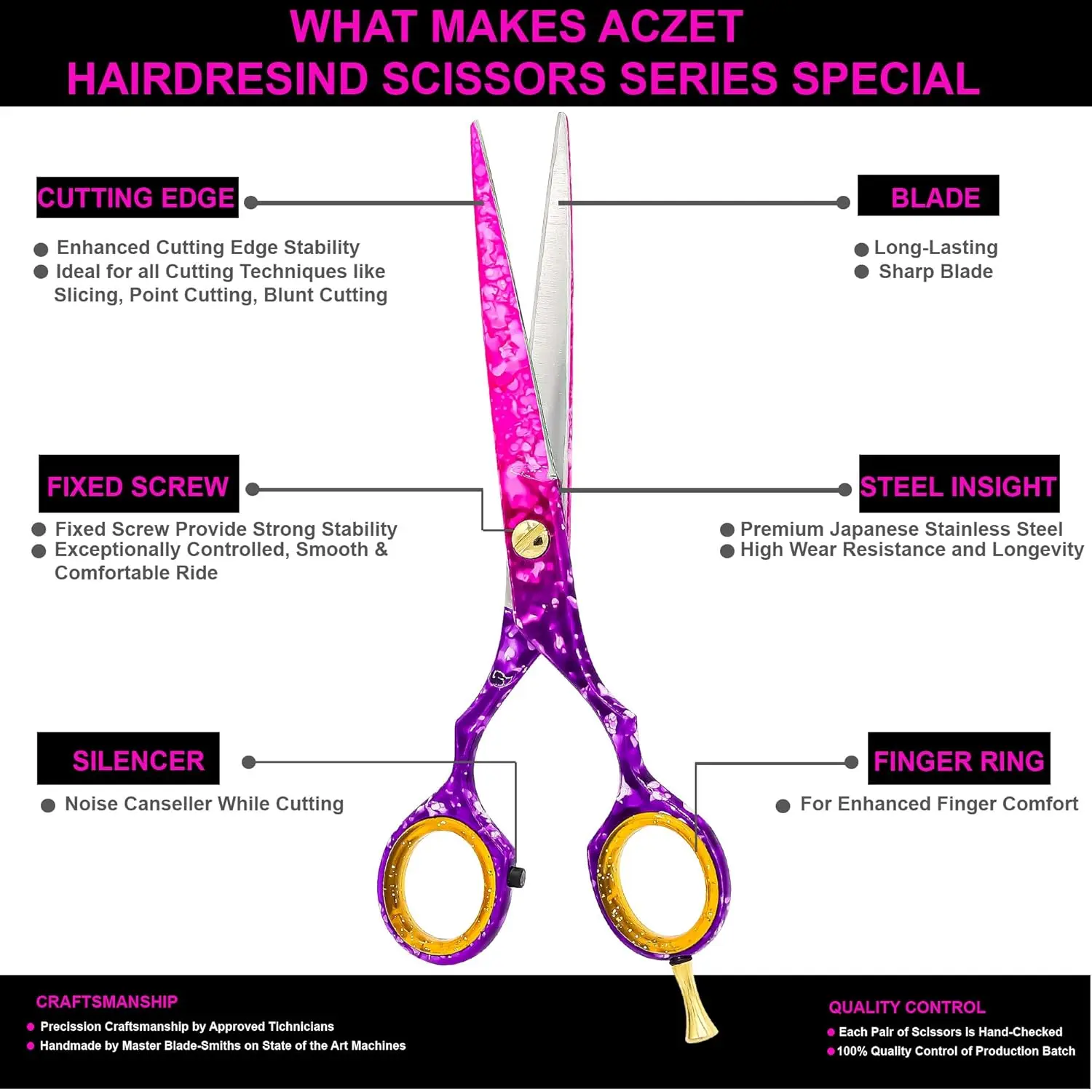Our hair cutting scissors feature an adjustable round tension screw mechanism, allowing you to fine-tune the scissors to your exact preferences. This is crucial for achieving the desired results, whether you’re performing intricate layering or simply trimming split ends. These salon scissors are specially made for professionals, barbers, and hairdressers, but their user-friendly design makes them suitable for personal use as well.