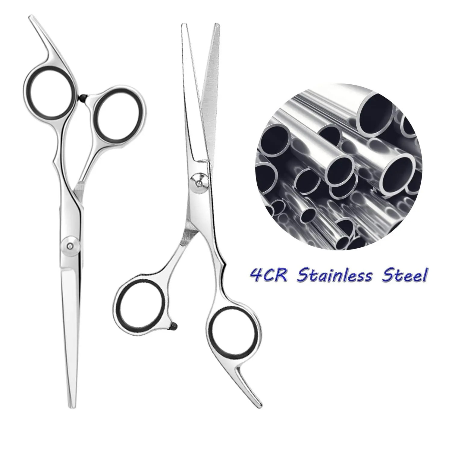 Professional 6.7-inch hair cutting scissors made from durable 4CR stainless steel. Ergonomic design for comfortable use. Includes cleaning cloth and comb. Perfect for home or salon!
