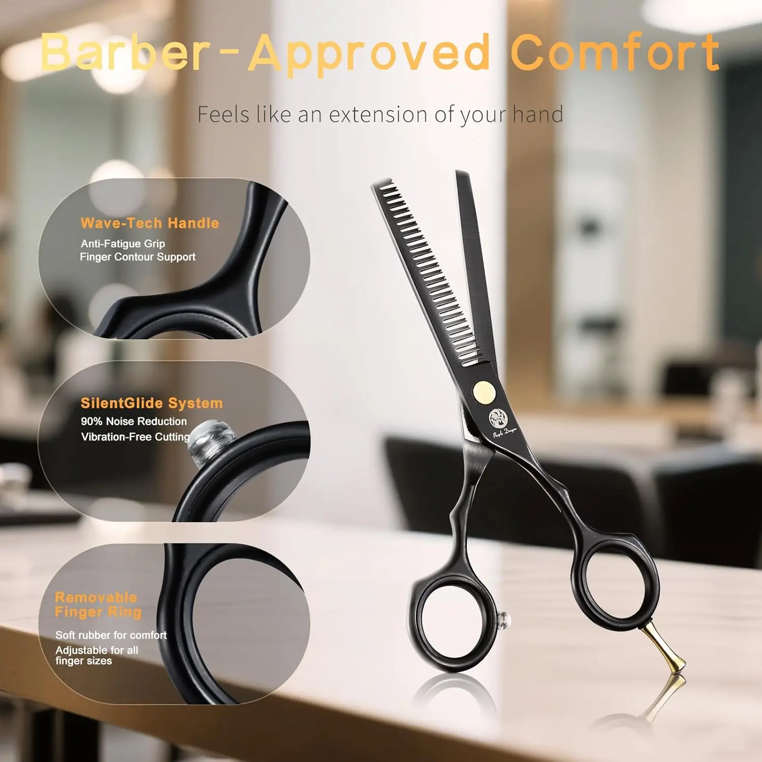 Achieve flawless haircuts every time with our premium Hair Cutting Scissors Set. Crafted with precision and designed for comfort, these 5.5-inch barber shears are the perfect tool for professional hairdressers, barbers, and even beginners. The blades are constructed from hand-sharpened Japanese stainless steel, known for its exceptional durability and ability to retain a sharp edge up to 3 times longer than regular stainless steel. Say goodbye to dull blades that lock up – our scissors ensure a smooth, efficient, and consistent cutting experience. Designed with a finely honed blade and a perfect western hand design, these scissors allow you to cut more efficiently and comfortably. We’ve invested extra time in crafting our scissors so you can work with ease and precision, reducing fatigue even during long shearing sessions. Ideal for both professional barbers and pet groomers, these scissors are built to last and provide exceptional performance. We are so confident in the quality of our shears that we offer a lifetime guarantee. If you encounter any issues during use, we provide free maintenance services. And if you’re ever unsatisfied, we’ll refund your money, no questions asked. The accessories included in the set come in random colors, adding a touch of surprise to your purchase. Invest in these high-quality hair cutting scissors and elevate your cutting skills to the next level. Whether you’re a seasoned professional or just starting out, these shears will help you achieve perfect results every time. Experience the difference of Japanese stainless steel and ergonomic design – order your set today! These are simply great scissors.
