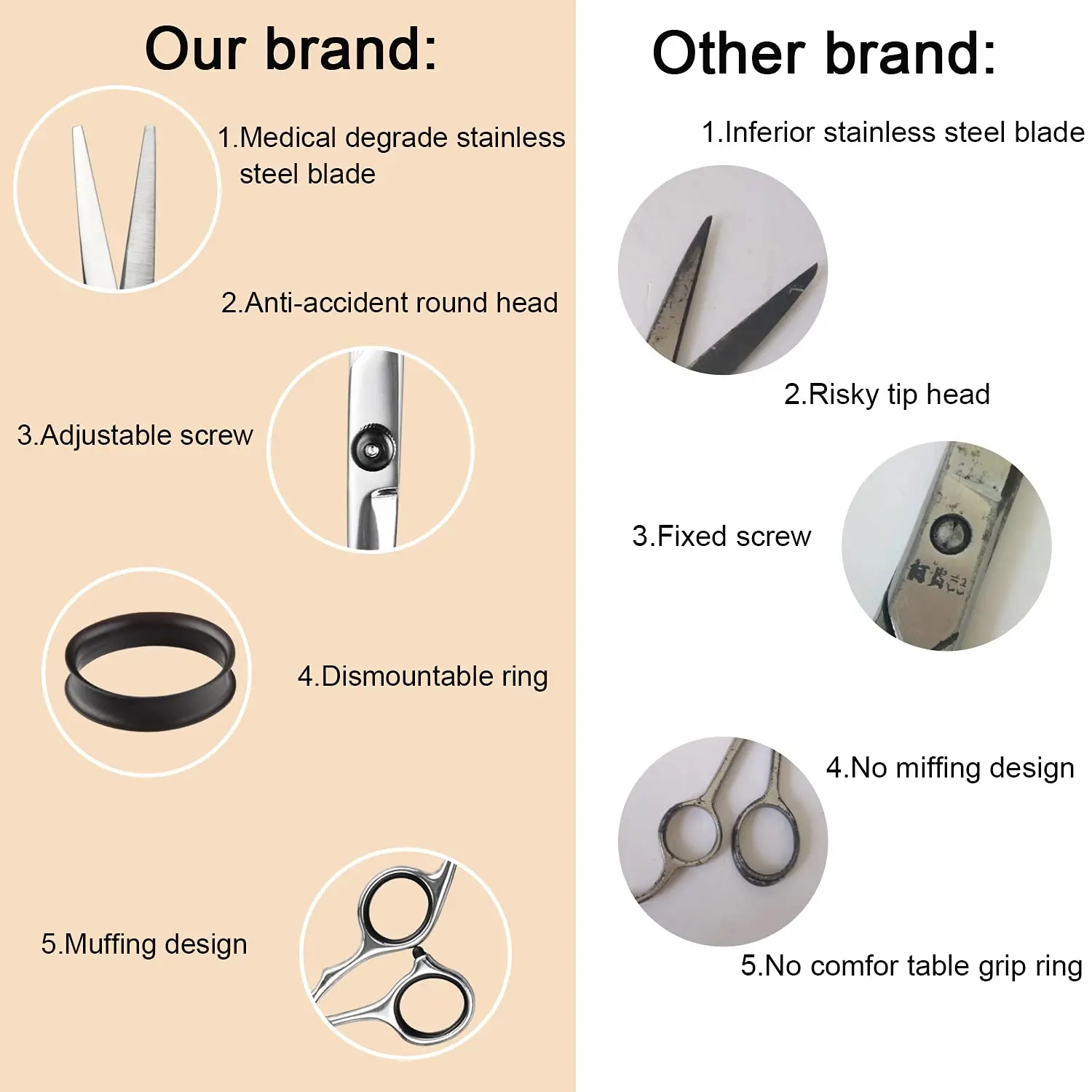 Achieve professional-quality haircuts in the comfort of your own home with our Hair Cutting Scissors Set. This comprehensive barber kit is designed for both beginners and experienced stylists, providing the precision and control needed for flawless results. Crafted with high-quality stainless steel blades, these scissors deliver consistently sharp, clean cuts, preventing snags and uneven trims. The ergonomic design ensures a comfortable grip, even during extended use, reducing hand fatigue and maximizing control. The adjustable tension screw allows you to customize the blade tightness to your preference, ensuring smooth and effortless cutting. Whether you’re trimming bangs, layering hair, or performing a complete haircut, this set provides the tools you need to achieve salon-worthy results every time. Invest in your hair’s appearance and save money on expensive salon visits with our Hair Cutting Scissors Set. Experience the difference that quality tools can make. This set will quickly become an essential tool in your grooming arsenal. Enjoy the confidence that comes with perfectly styled hair. The durable construction ensures long-lasting performance, making this set a valuable investment. Get the perfect haircut every time.