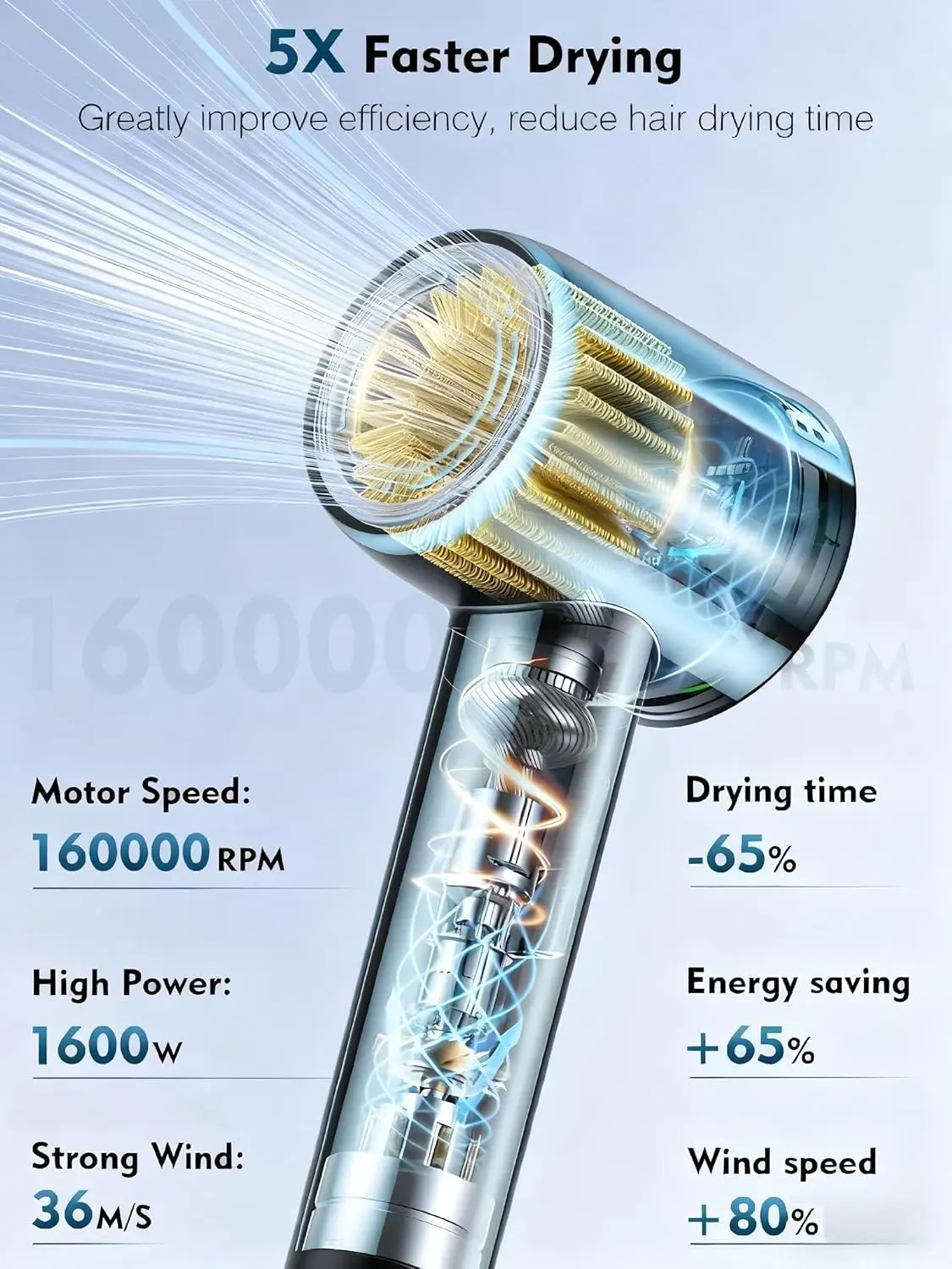 • Salon Fast Drying: 1600W motor cuts drying time in half.