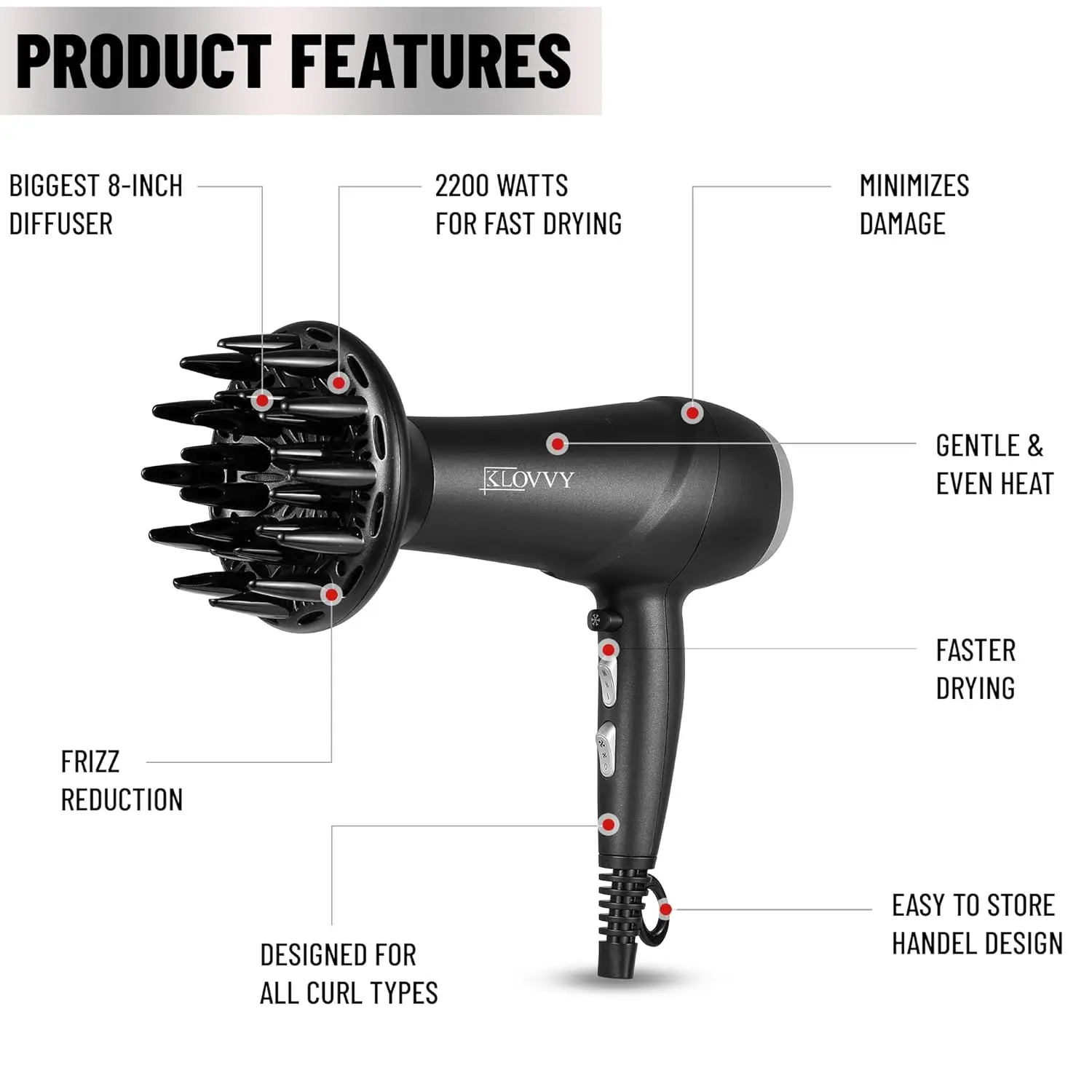 • 2200W AC motor for 3X faster drying.