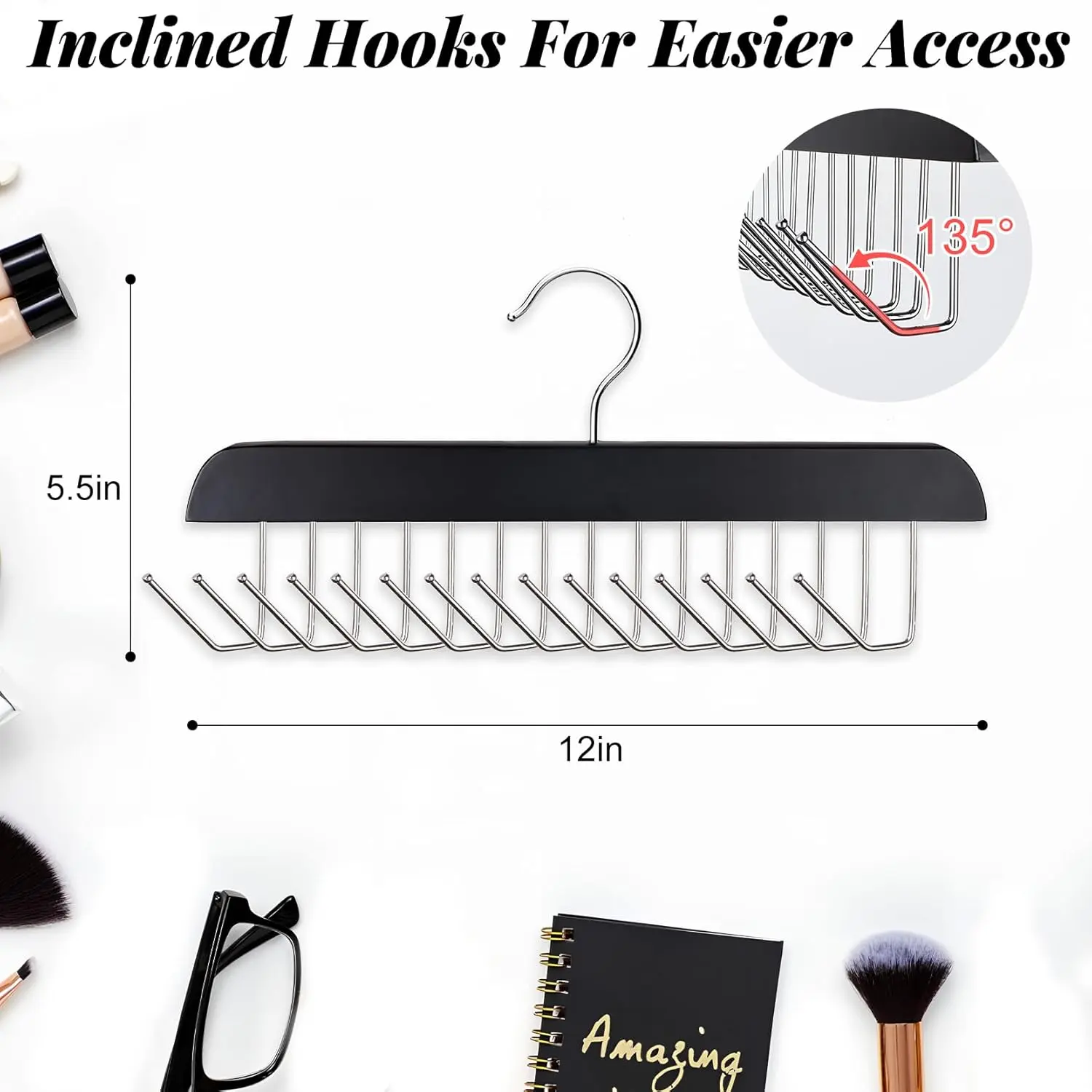 • 135 degrees slanted hooks for easy removal.