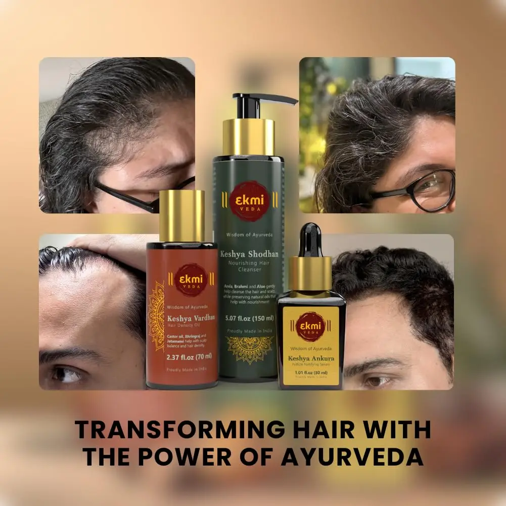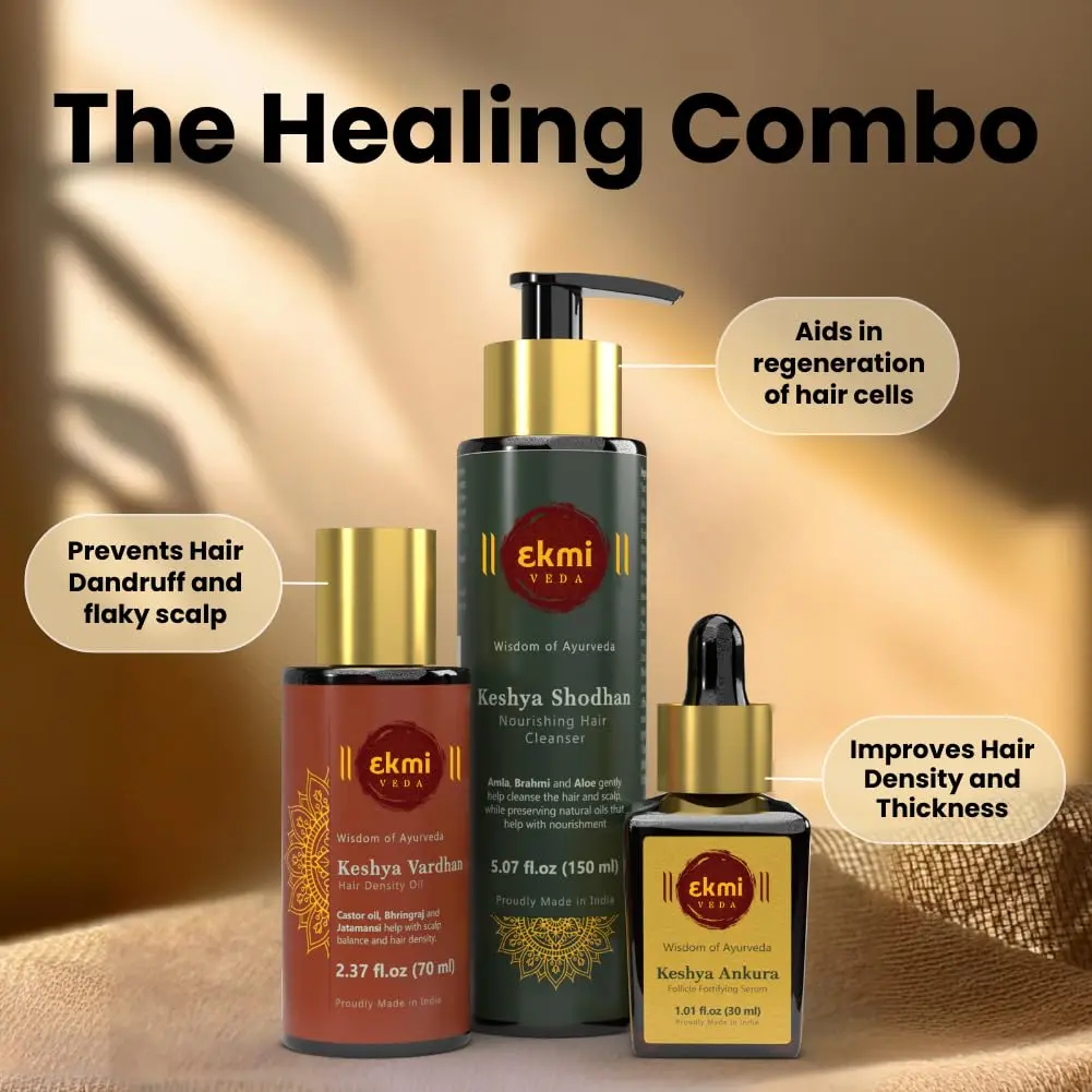 Unlock your hair’s full potential with our Holistic Hair Growth Combo! This comprehensive system features a sulfate-free shampoo (150ml), a potent follicle stimulating serum (30ml), and a scalp nourishing hair growth oil (70ml). Designed for a holistic approach to hair health, our combo is your solution to combat hair loss, hair thinning, alopecia, and even postpartum hair loss. Experience the transformative power of ancient Ayurvedic herbs like Brahmi, Amla, and Bhringraj, expertly combined with modern ingredients like Redensyl, Procapil, and Capilia Longa, all known for their DHT blocking capabilities. Our vegan and cruelty-free formula is paraben-free, sulfate-free, and dermatologically tested for sensitive skin, ensuring a safe and effective experience. Suitable for all hair types, this non-toxic and silicone-free solution is clinically proven to prolong the anagen (growth) phase of hair follicles, resulting in visibly thicker, fuller hair over time. Achieve the best results by using all three products regularly for 3-6 months. Easy to use: gently massage your entire scalp, hair roots, and tips with our Hair Growth Oil. Leave it on for at least one hour before washing with our hair nourishing shampoo. After washing, apply the serum to a clean scalp and affected areas for 5 minutes and leave it on overnight. Begin your journey to healthier, more vibrant hair today!