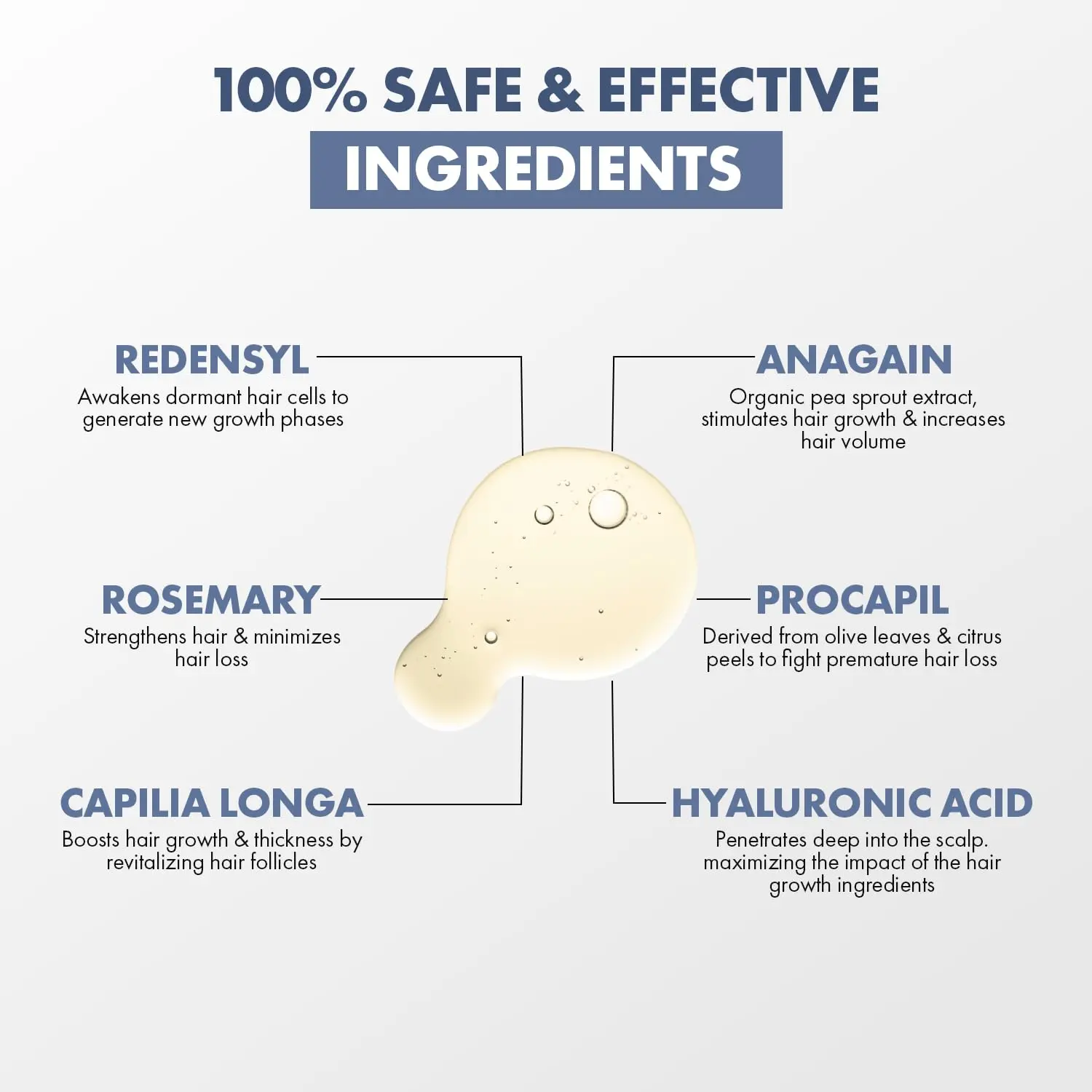 • Contains Redensyl, Capilia Longa, Anagain, and Procapil