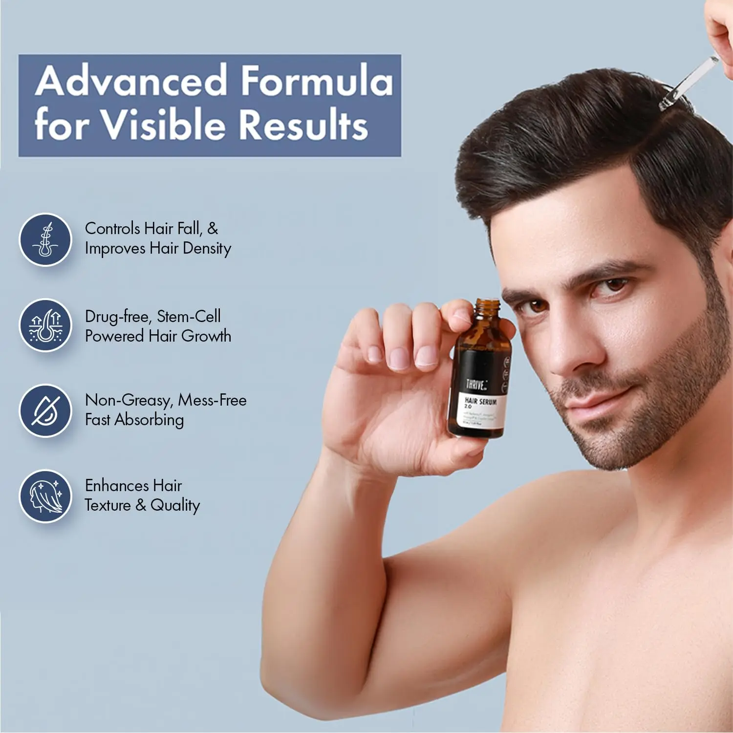 Fight hair loss and promote hair growth with our revolutionary Hair Growth Serum! This powerful formula is packed with award-winning ingredients like Redensyl, Capilia Longa, Anagain, and Procapil, working synergistically to revitalize your hair from root to tip. Our silicone-free serum restores life, volume, and density to thinning hair, helping you achieve a fuller, healthier-looking head of hair. Specifically formulated to combat hair loss by stimulating hair follicles and encouraging new hair growth, it gives the hair the volume and density that it needs. Say goodbye to lifeless, thinning hair and hello to a renewed sense of confidence. Restore the lost density with this specially formulated serum which stimulates hair growth. Applying the serum is easy; simply use the dropper to apply a generous amount directly to your scalp, focusing on areas of hair loss. Gently massage the serum into your scalp with your fingertips to ensure optimal absorption. Rinse your hands after application. For best results, incorporate this serum into your nightly routine. Apply it every night before bed to allow the powerful ingredients ample time to work their magic while you sleep. Wake up to healthier, stronger, and more vibrant hair. It’s the perfect solution to fight back against hair thinning and promote natural, healthy hair growth. Give your hair the boost it deserves and unlock its full potential with our advanced Hair Growth Serum. Transform your hair and regain your confidence, one drop at a time. Regular use is key to achieving optimal results.