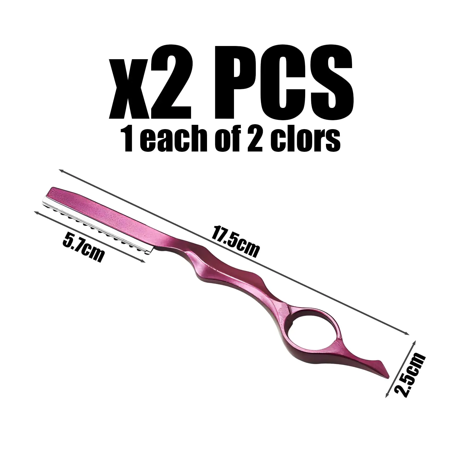 This Hair Knife Set includes 2 durable aluminum knives in black and rose red. Perfect for hair cutting, trimming, and styling at home or in a barber shop. Ergonomic design ensures comfortable use.