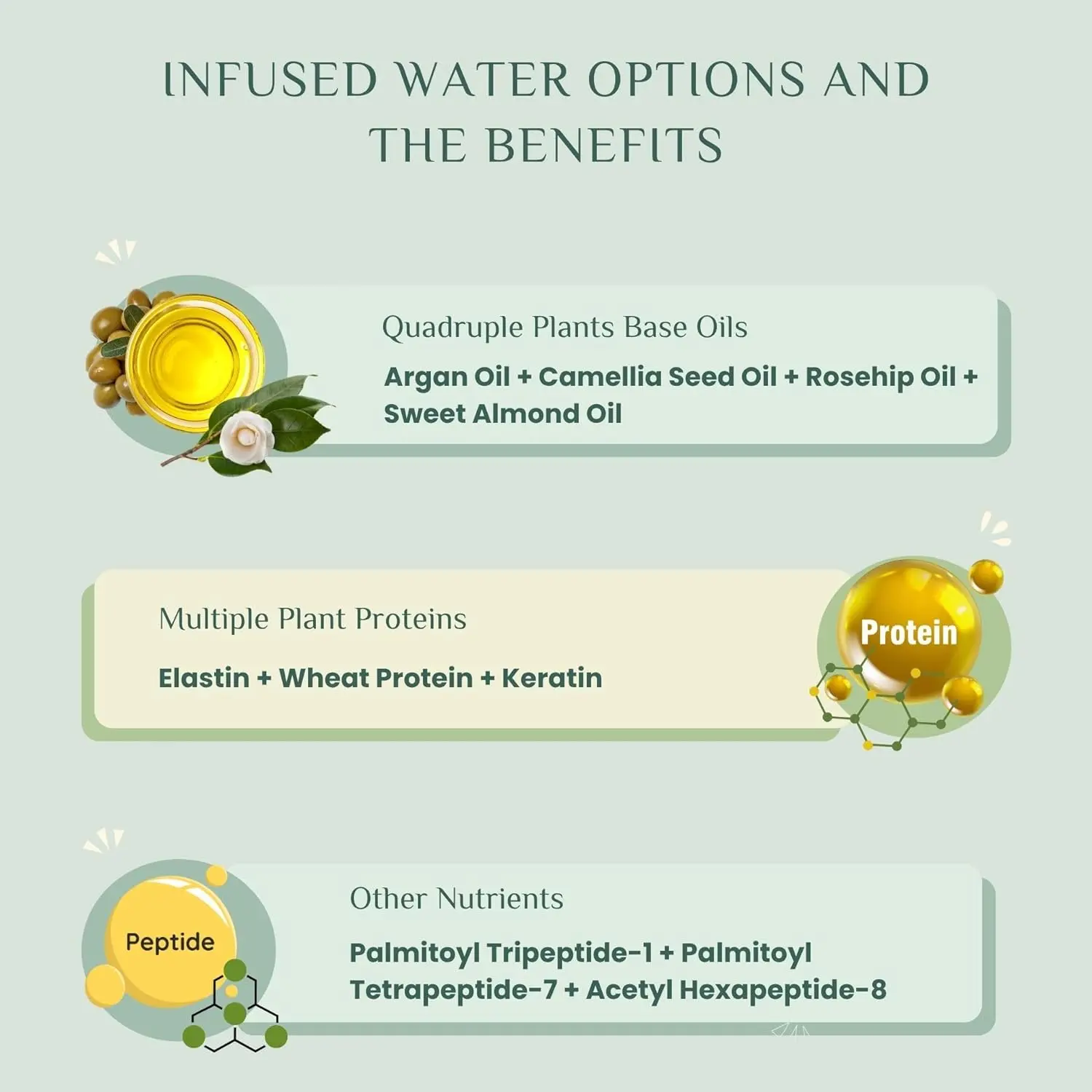• Infused with Argan, Camellia Seed, Rosehip, and Sweet Almond Oil