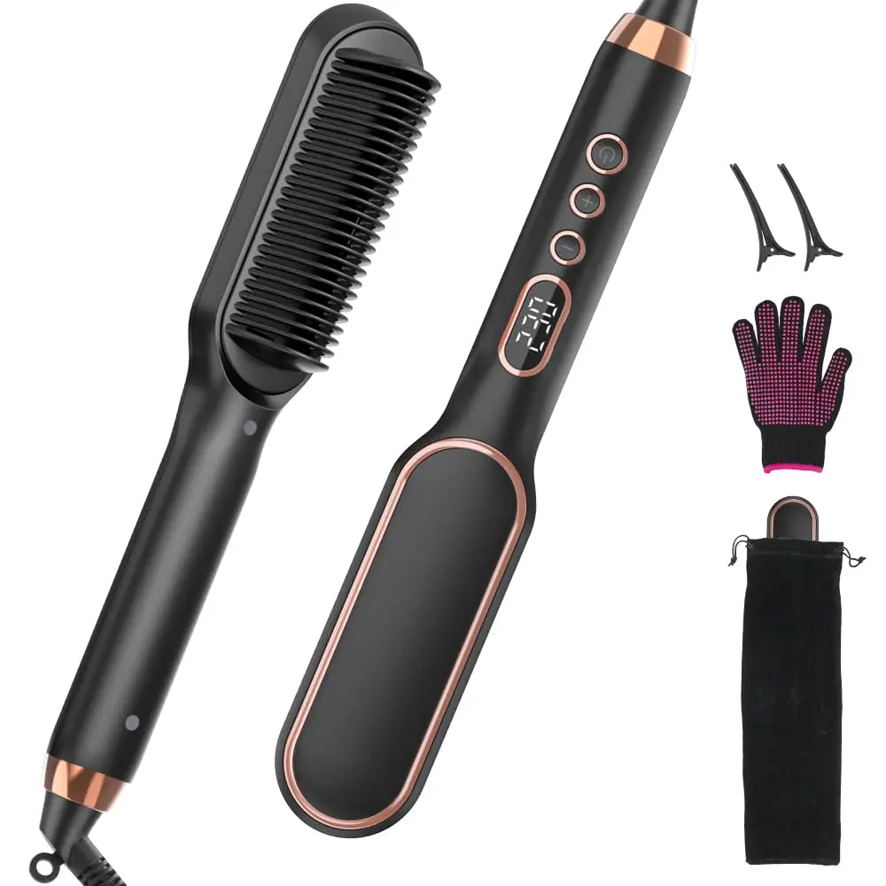 Achieve salon-quality straight hair effortlessly with our 3-in-1 Hair Straightener Brush! This innovative tool combines the functionalities of a hair straightener comb, a flat iron, and hair oil application, giving you sleek, straight hair in just one step. Say goodbye to multiple styling tools and hello to quick and easy styling at home.