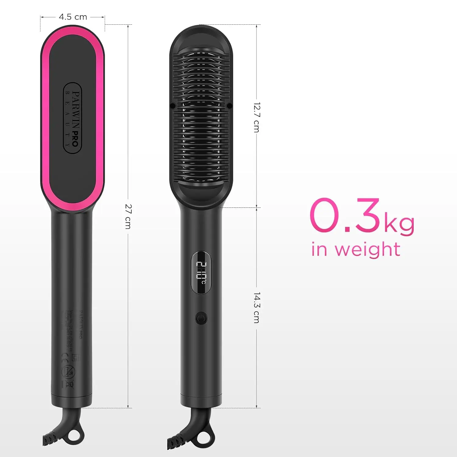 Achieve salon-quality, straight, and shiny hair in minutes with the PARWIN PRO BEAUTY Hair Straightener Brush! This innovative brush combines the power of a straightener with the ease of a brush. Featuring curved comb teeth with a keratin ceramic coating, it reaches the root to distribute heat evenly, minimizing breakage and ensuring a smooth finish from root to tip. Say goodbye to frizz and hello to healthy, sleek hair.