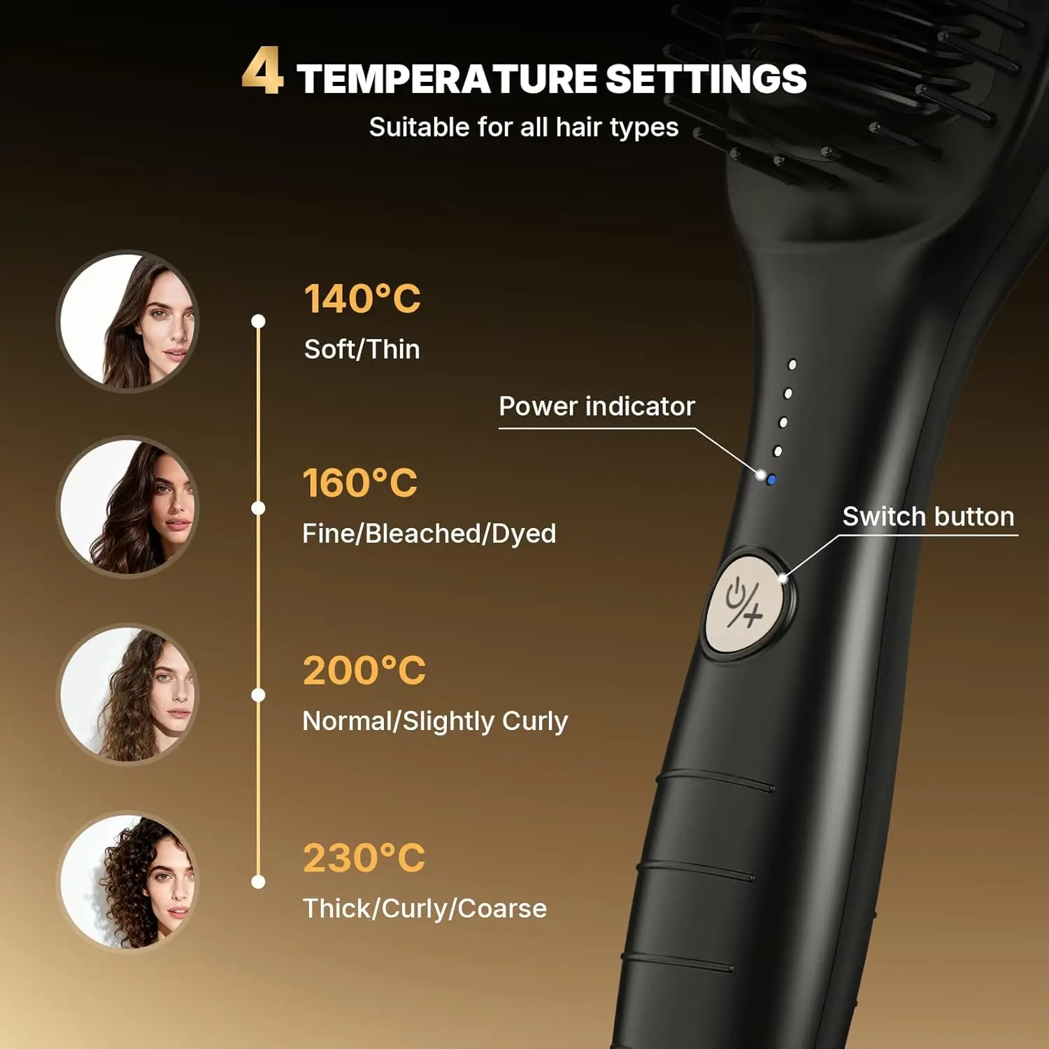 • 4 Temperature Settings (140-230℃) for All Hair Types
