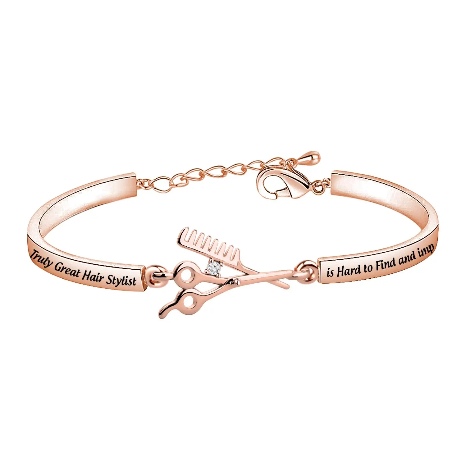 Show your favorite hair stylist how much you appreciate them with this beautiful and meaningful hand-stamped bracelet! This elegant copper bracelet is the perfect gift for a hair stylist graduation, a Christmas present, a birthday gift, or simply a thank you for their amazing skills. The inscription, “A Truly Great Hair Stylist is Hard to Find impossible to forget,” serves as a constant reminder of their impact and talent. It’s more than just jewelry; it’s an inspirational token that can help hairdressers and cosmetology students stay motivated and focused on their path to success. Crafted with care and pride, this bracelet is lead-free and nickel-free, ensuring it is comfortable and safe to wear. Give the gift of appreciation and encouragement with this unique and thoughtful present. It’s a wonderful way to celebrate their dedication and passion for their craft. This bracelet comes packaged in a beautiful velvet bag, ready for gifting. A perfect present for the hairstylist that always makes you feel your best! It’s an ideal way to acknowledge their artistry and make them feel valued. Let them know you recognize their talent and hard work with this special keepsake they can wear every day. This stylish and inspirational bracelet is sure to be cherished for years to come.
