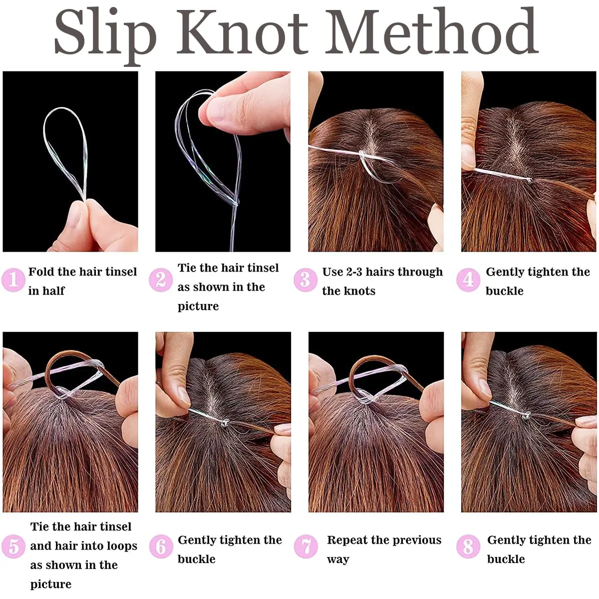 • Easy to apply with various methods including tying, braiding, using hooks, or attaching to wig clips.