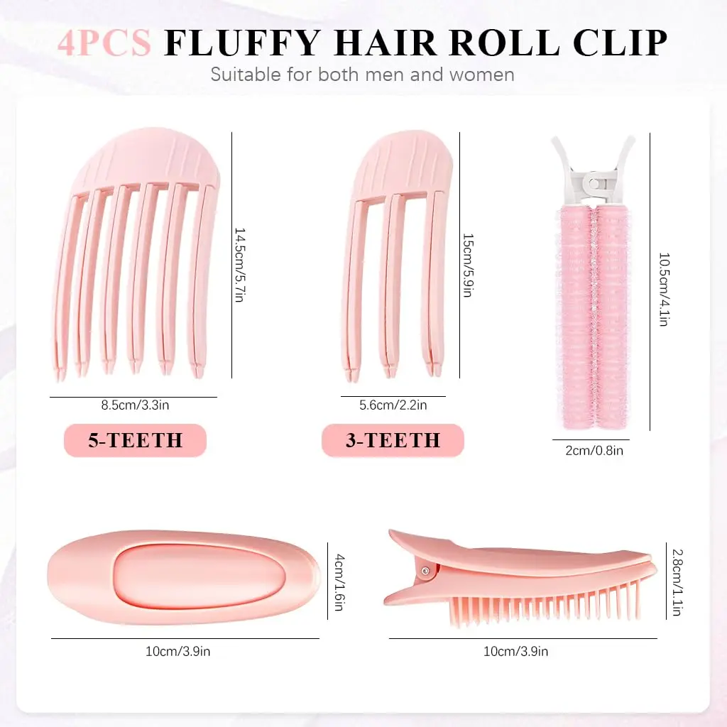 Achieve effortless, salon-worthy volume at home with this versatile Hair Volume Clip Set! This set includes styling combs and a unique hair roller clip/brush clip combo, designed to add instant lift and fullness to all hair types. The specially designed combs feature both 6-teeth and 3-teeth configurations, providing exceptional versatility for creating a range of styles. The broader teeth are perfect for achieving dramatic, visually appealing volume, while the narrower teeth allow for precise adjustments and finishing touches. Each swipe effortlessly lifts hair strands, creating a full and voluminous look without the tangling or breakage often associated with other volumizing methods.