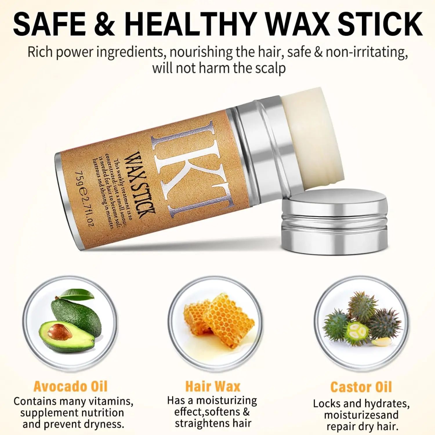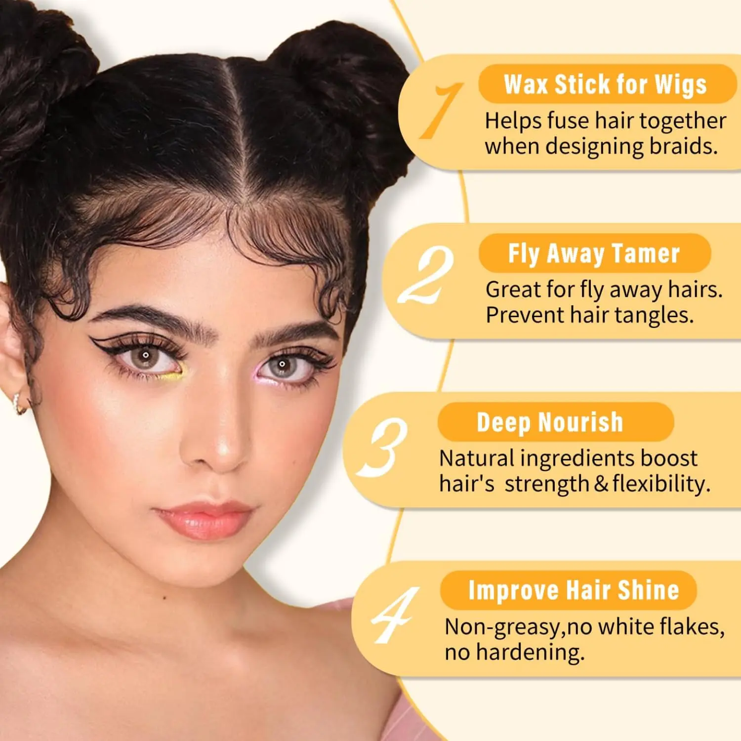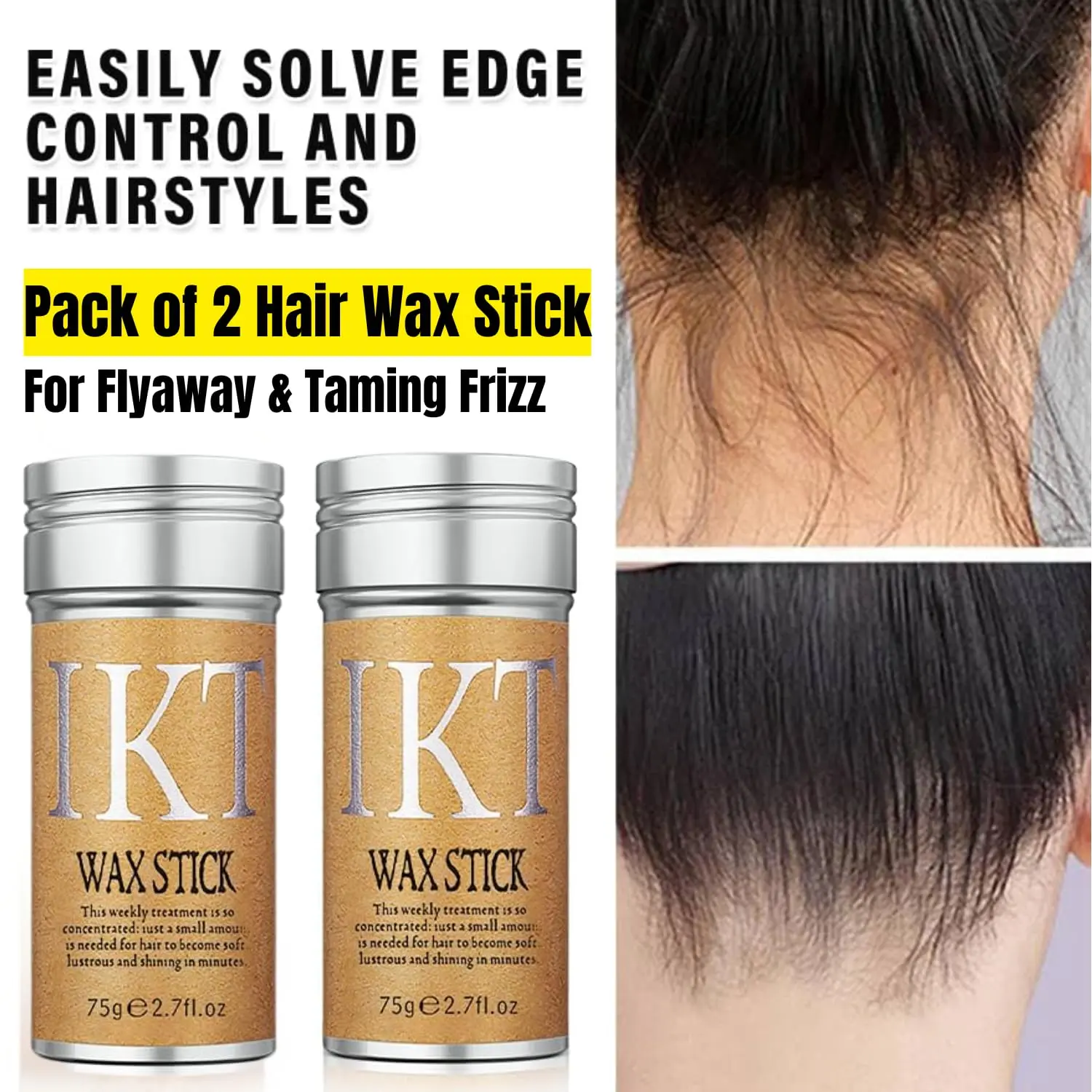 Get two hair wax sticks for flawless hairstyles! Strong hold, non-greasy formula tames flyaways on all hair types. Perfect for wigs, edges, ponytails. Nourishes and repairs with plant-based ingredients.