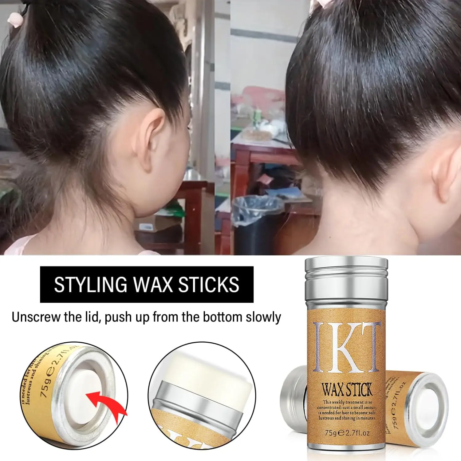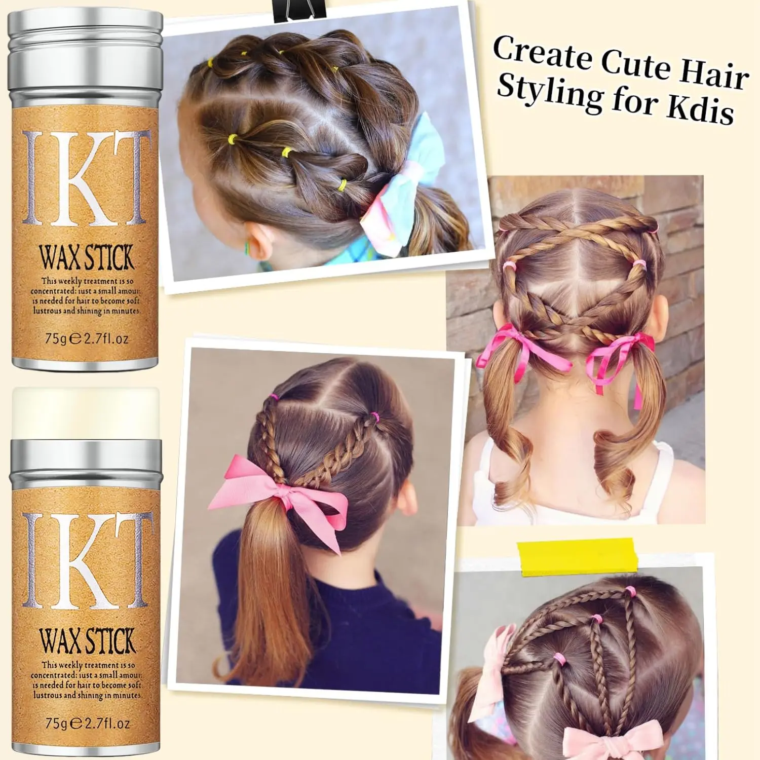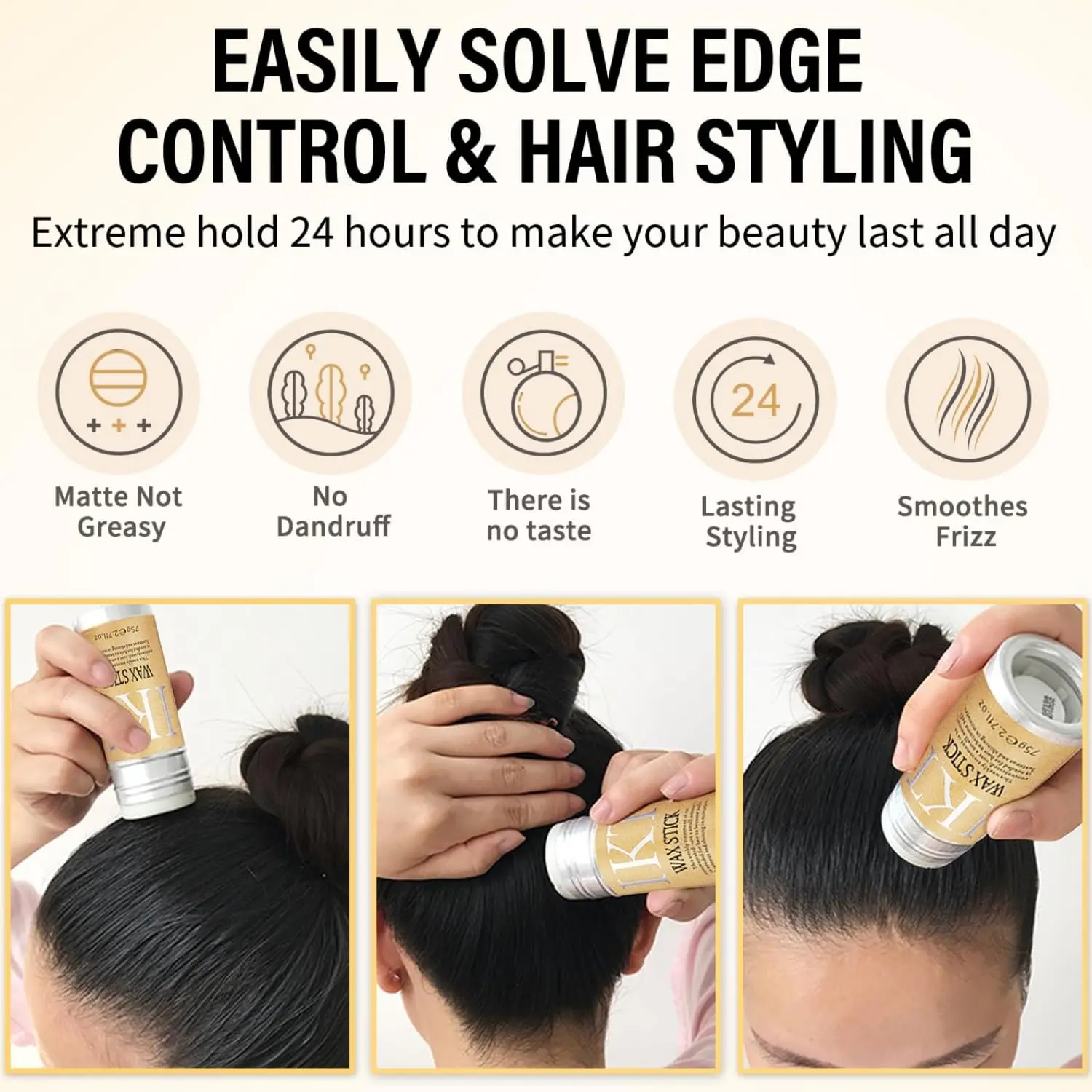 Get two hair wax sticks for flawless hairstyles! Strong hold, non-greasy formula tames flyaways on all hair types. Perfect for wigs, edges, ponytails. Nourishes and repairs with plant-based ingredients.