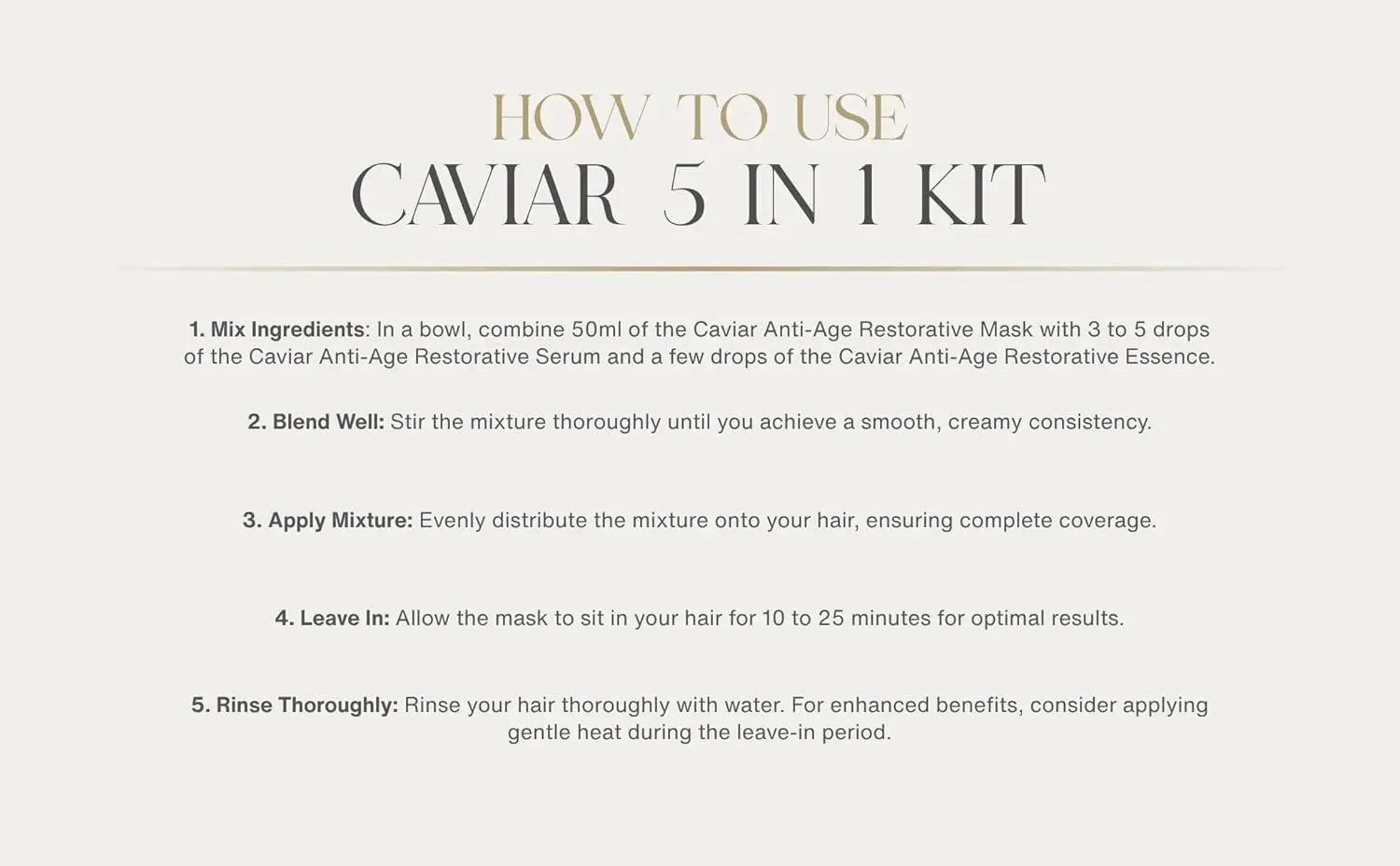 • Includes: Shampoo, Conditioner, Mask, Serum, Essence