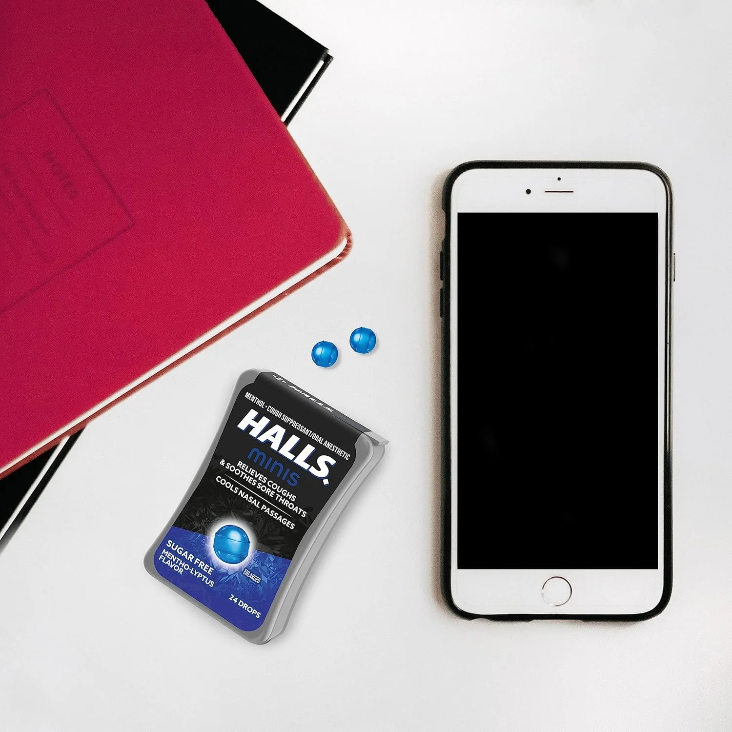 Find fast and effective relief from coughs and sore throats with HALLS Minis Mentho-Lyptus Sugar Free Cough Drops. This pack includes eight individually wrapped, pocket-sized containers, each filled with 24 miniature menthol cough suppressant and oral anesthetic drops, providing a total of 192 drops. Experience the trusted relief of HALLS in a convenient, sugar-free format. These miniature drops pack the same powerful punch as regular HALLS, delivering 2.7 mg of menthol per drop to help soothe sore throats, cool nasal passages, and quiet coughs due to colds or minor irritations. The sugar-free formula makes them a great choice for those watching their sugar intake. The flip-top container design allows for discreet and effortless access to the unwrapped drops. No wrappers to fumble with! Keep a pack in your bag, purse, desk, or car for on-the-go relief whenever and wherever you need it. HALLS Minis Mentho-Lyptus are your perfect companion for fighting coughs and soothing throat irritation at home, work, or on the road. Use as directed to experience the cooling, soothing, and cough-suppressing benefits of HALLS in a convenient, portable size. Don’t let coughs and sore throats slow you down – grab a pack of HALLS Minis Mentho-Lyptus Sugar Free Cough Drops and find relief today!