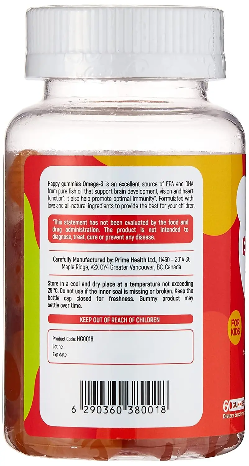 Give your child the delicious and essential nutrients they need with Happy Gummies Omega 3 Gummies! These tasty, chewable gummies make getting their daily dose of Omega 3 fatty acids a breeze. Forget about fishy aftertastes and struggles with pills – Happy Gummies deliver a burst of fruity flavor kids will love. Omega 3s are vital for supporting healthy brain development, cognitive function, and overall well-being. Each serving provides a beneficial amount of Omega 3s, contributing to improved focus, memory, and learning abilities. These gummies are also a fantastic way to support healthy vision and a strong immune system. Made with high-quality ingredients and free from artificial colors, flavors, and preservatives, Happy Gummies Omega 3 Gummies are a healthy and convenient choice for parents who want the best for their children. They are also gluten-free and allergen-friendly, making them suitable for kids with sensitivities. Incorporate Happy Gummies into your child’s daily routine to help them thrive and reach their full potential. A simple, tasty, and effective way to boost your child’s health! And because they taste great, your kids will actually *want* to take them. Give your child the gift of brain-boosting, health-supporting Omega 3s with Happy Gummies! The 60-count bottle ensures you have a convenient supply for lasting benefits. These are not a replacement for regular nutritious food but an additional boost to your kids diet.