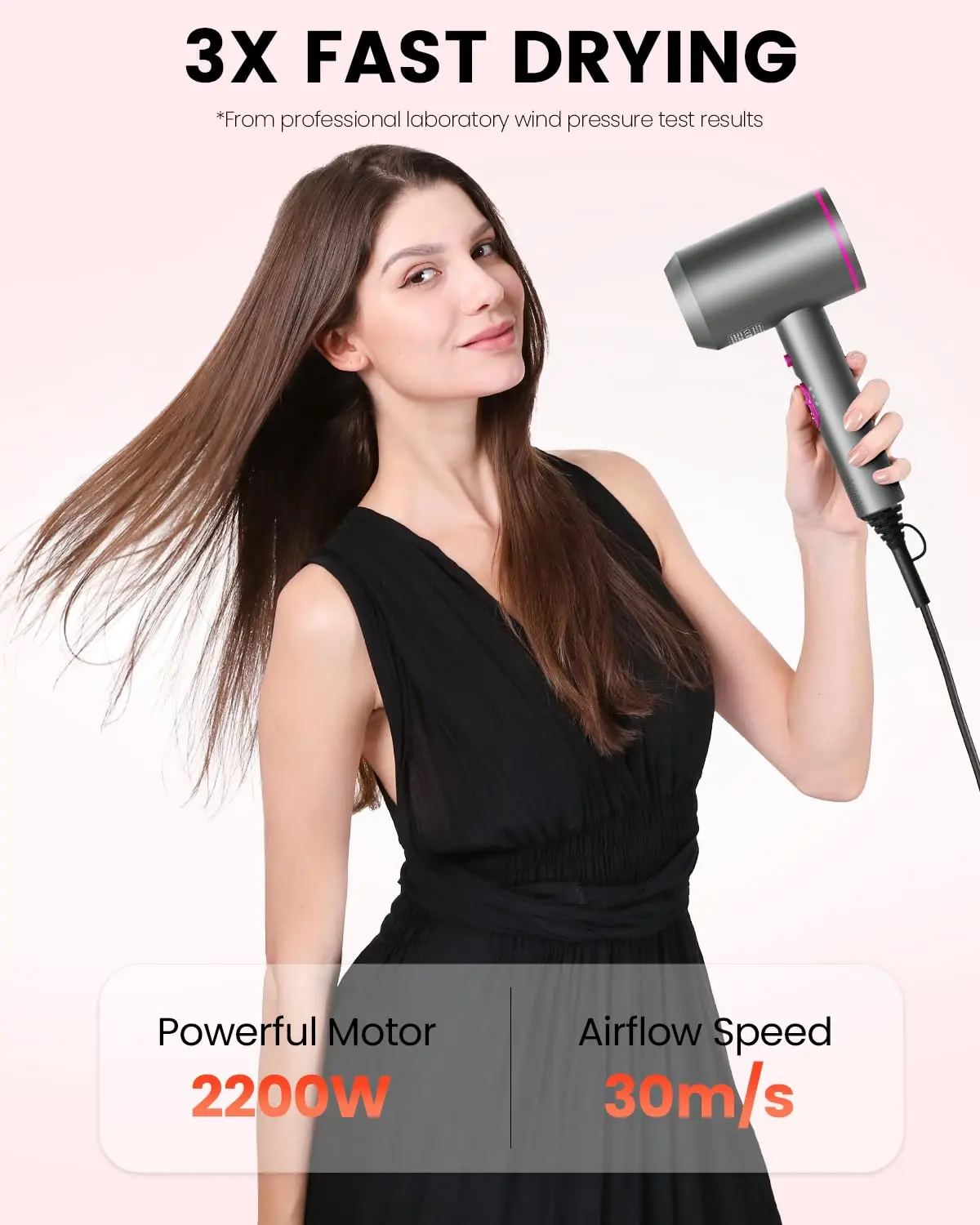 • Dries hair 3X faster with 30 m/s concentrated airflow.