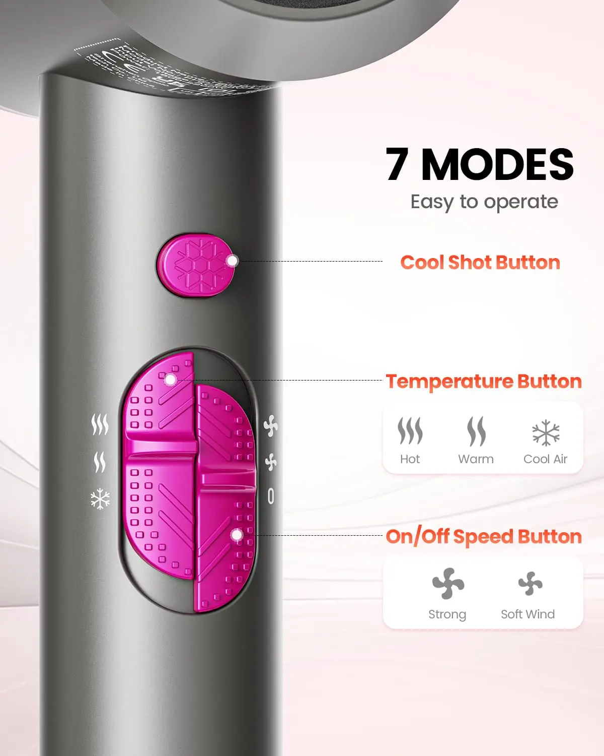 • 7-mode precision styling with independent heat and speed settings.