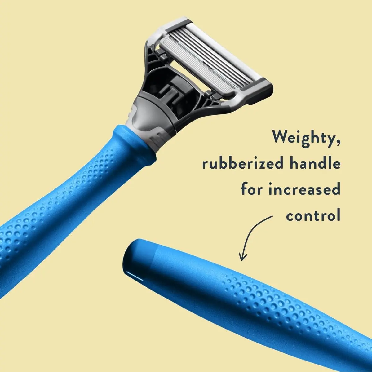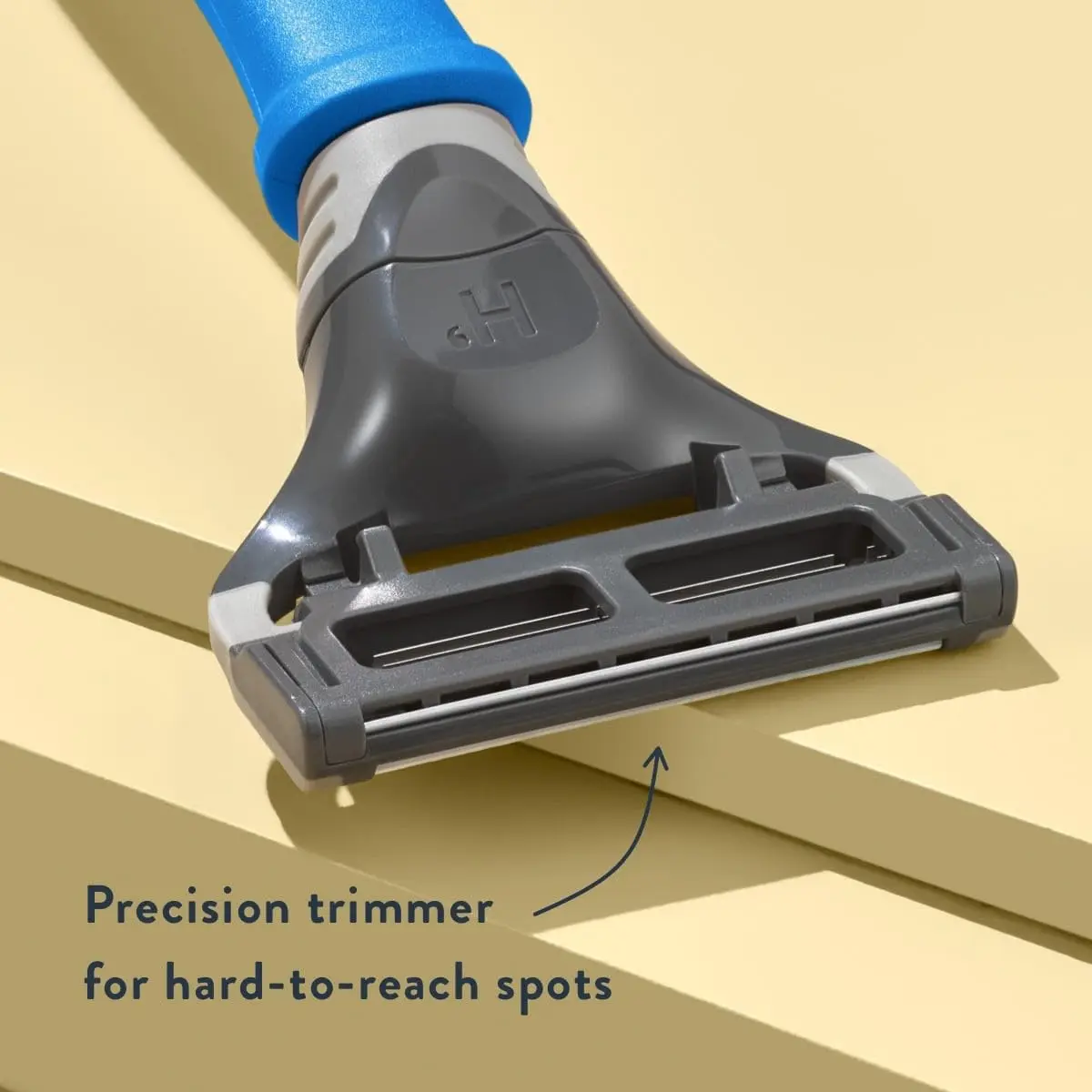 Experience a superior shave with Harry’s Razors for Men, featuring the Truman handle in Surf Blue. This set includes the ergonomically designed Truman handle and three German-engineered 5-blade razor refills, all crafted to deliver a smooth, comfortable, and close shave. Harry’s commitment to quality shines through in every detail, from the premium German steel blades to the thoughtful design of the handle. Each razor blade cartridge features five sharp, durable blades, a flex hinge that contours to your face, a lubricating strip for enhanced glide, and a precision trimmer for those hard-to-reach areas like sideburns and under your nose. The Surf Blue Truman handle is engineered for optimal grip and control. Its rubberized matte exterior provides a secure hold, even when wet, while the textured grip pattern further enhances control. A weighted core adds to the stability and balance of the razor, allowing for a more precise and comfortable shaving experience. Harry’s direct-to-consumer model cuts out the middleman markups, allowing them to offer high-quality razors at a fair price. They invested in a factory in Germany to maintain strict quality control over every aspect of the blade manufacturing process. Harry’s is confident you’ll love their products. If you’re not completely satisfied with your purchase, simply reach out, and they will make it right. Enjoy a smooth, comfortable, and affordable shave with Harry’s Razors for Men.