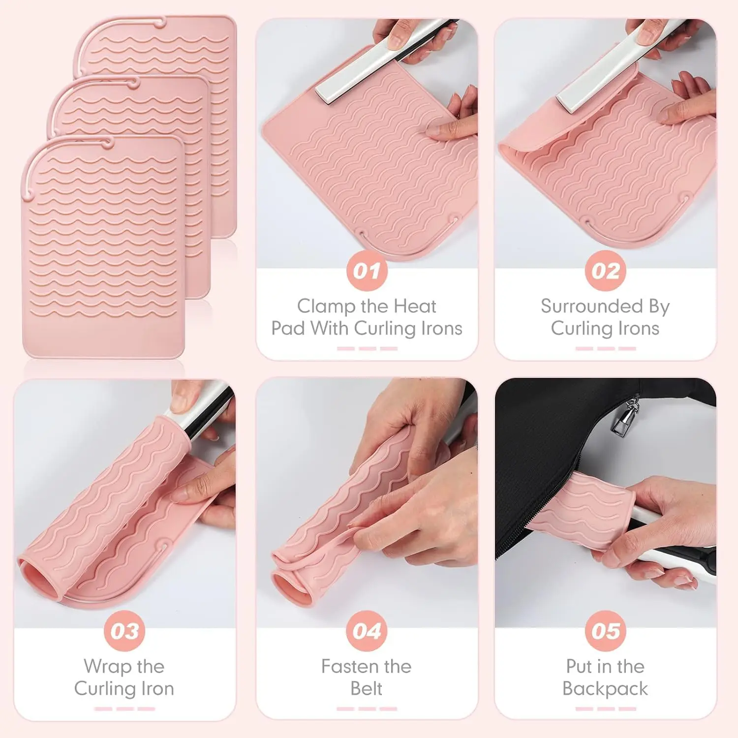 Protect your surfaces and hands from the heat of styling tools with this Heat Resistant Mat for Curling Irons and Hair Straighteners. Crafted from high-quality, heat-resistant silicone, this mat provides a safe and convenient way to manage hot tools during and after use. The unique wave design prevents slippage and allows for secure wrapping, while the integrated strap offers easy hanging and storage. Say goodbye to scorched countertops and singed fingers! This mat is not only heat resistant up to 450°F (232°C) but also easy to clean with just water. Save time and effort by wrapping up your hot tools immediately after use without waiting for them to cool down. Its flexibility allows for compact storage in your bag, perfect for travel or on-the-go styling. Enjoy a safer and more efficient styling experience with this essential accessory. The durable silicone construction ensures long-lasting performance, and the non-toxic, odorless material provides peace of mind. Whether you’re a professional stylist or simply styling your hair at home, this heat-resistant mat is a must-have for protecting your surfaces and simplifying your routine.