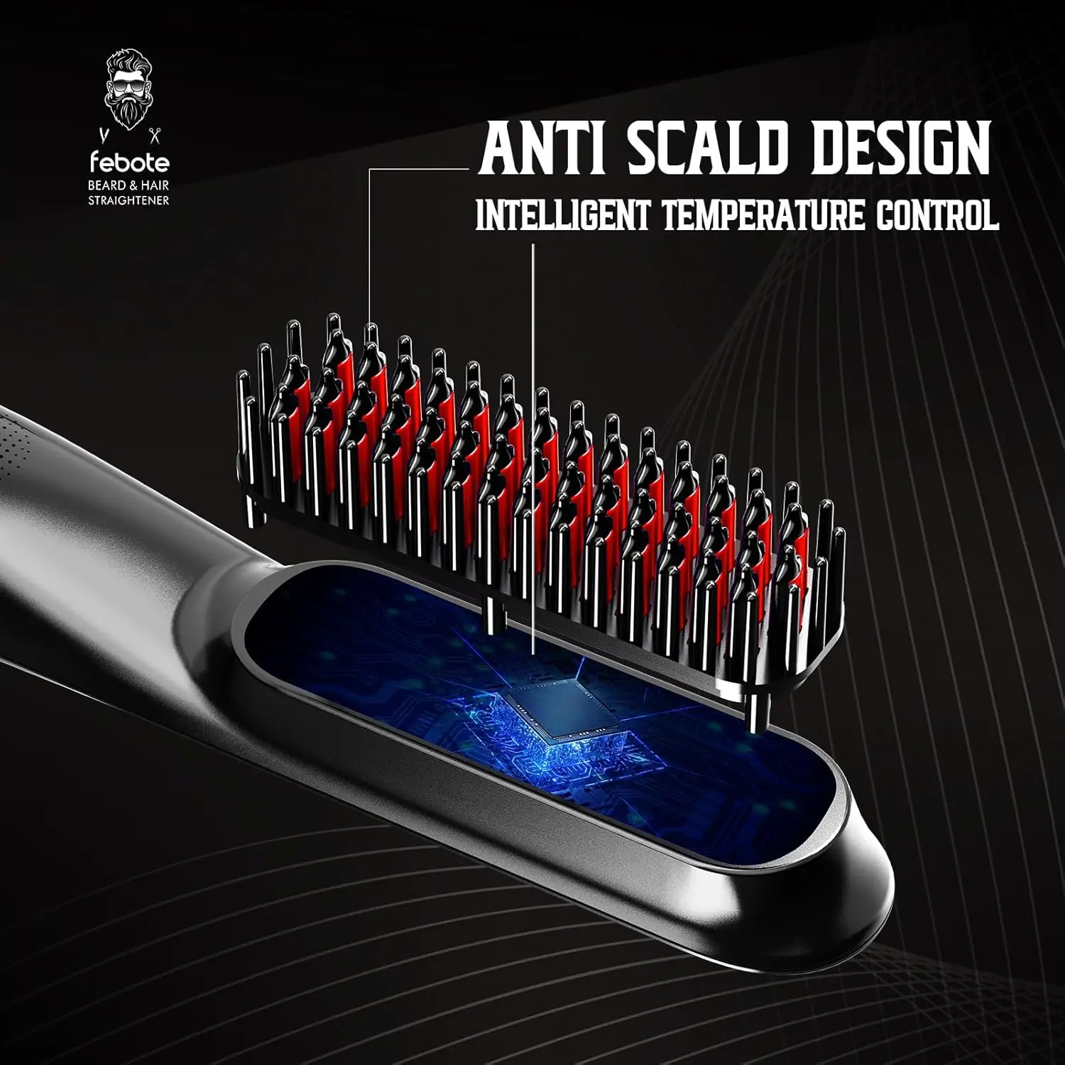 Tame your beard and achieve a polished look with the Heated Beard Straightener Brush for Men. This versatile grooming tool utilizes ultra-fast heating technology, reaching 338℉ in just 30 seconds, with a maximum temperature of 446℉ to effortlessly manage even the most unruly beards. Featuring EvenHeat PTC ceramic heating and IONIC technology, this straightener delivers consistent heat distribution while reducing frizz and tangles, leaving your beard smooth, healthy, and perfectly styled. The LCD screen allows for precise temperature control with 5 settings ranging from 338℉ to 446℉, making it suitable for all hair types, whether soft, wiry, thin, thick, or curly. Designed with an ergonomic handle and a larger brush for comfortable use, this straightener is perfect for daily grooming or travel, thanks to the included travel bag. Safety is paramount, with an anti-scalding design and automatic power-off function after 30 minutes of inactivity. This beard straightener also boasts wide voltage compatibility (110V-240V) and is certified with FCC, CE, and ROHS. More than just a beard straightener, it can also be used to straighten your hair for a complete style transformation. This styling tool makes an ideal gift for fathers, brothers, or friends on special occasions like Christmas, New Year’s, or birthdays. The high-quality ceramic material ensures even heat distribution, protecting your hair from damage.