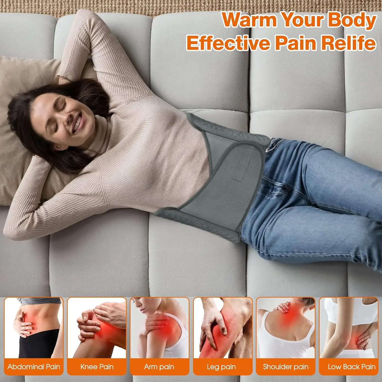 • Warms body and relieves pain in back, neck, shoulders, abdomen, legs, or arms.